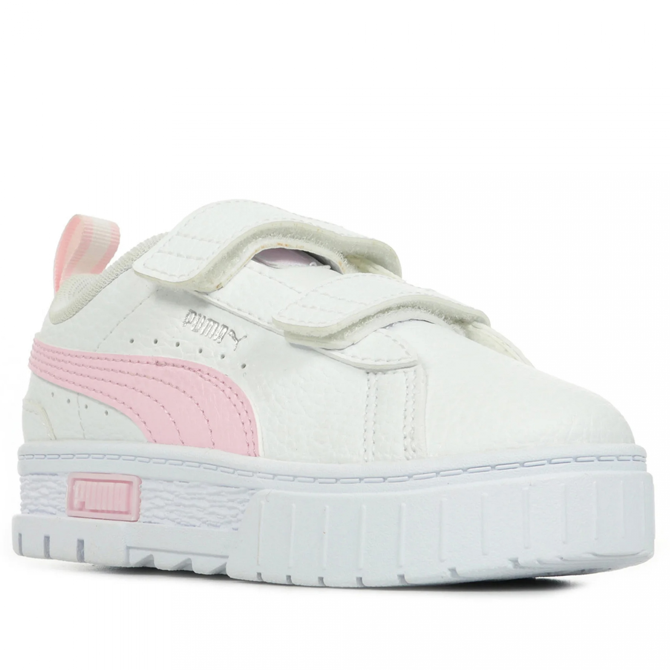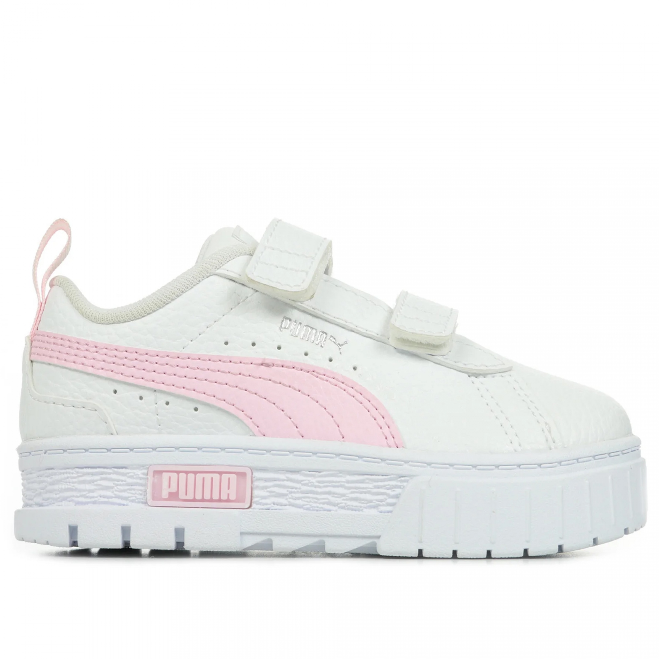 Baskets à scratchs – Puma imprimé argenté sur le côté – Chaussures basses – Bout avant rond – Fermeture à scratchs – Petite palteforme Couleur / Délavage: Blanc Nom: à scratchs Style: Basses Talon: Plat Fermeture: A scratch Bout: Rond Composition: Synthétique