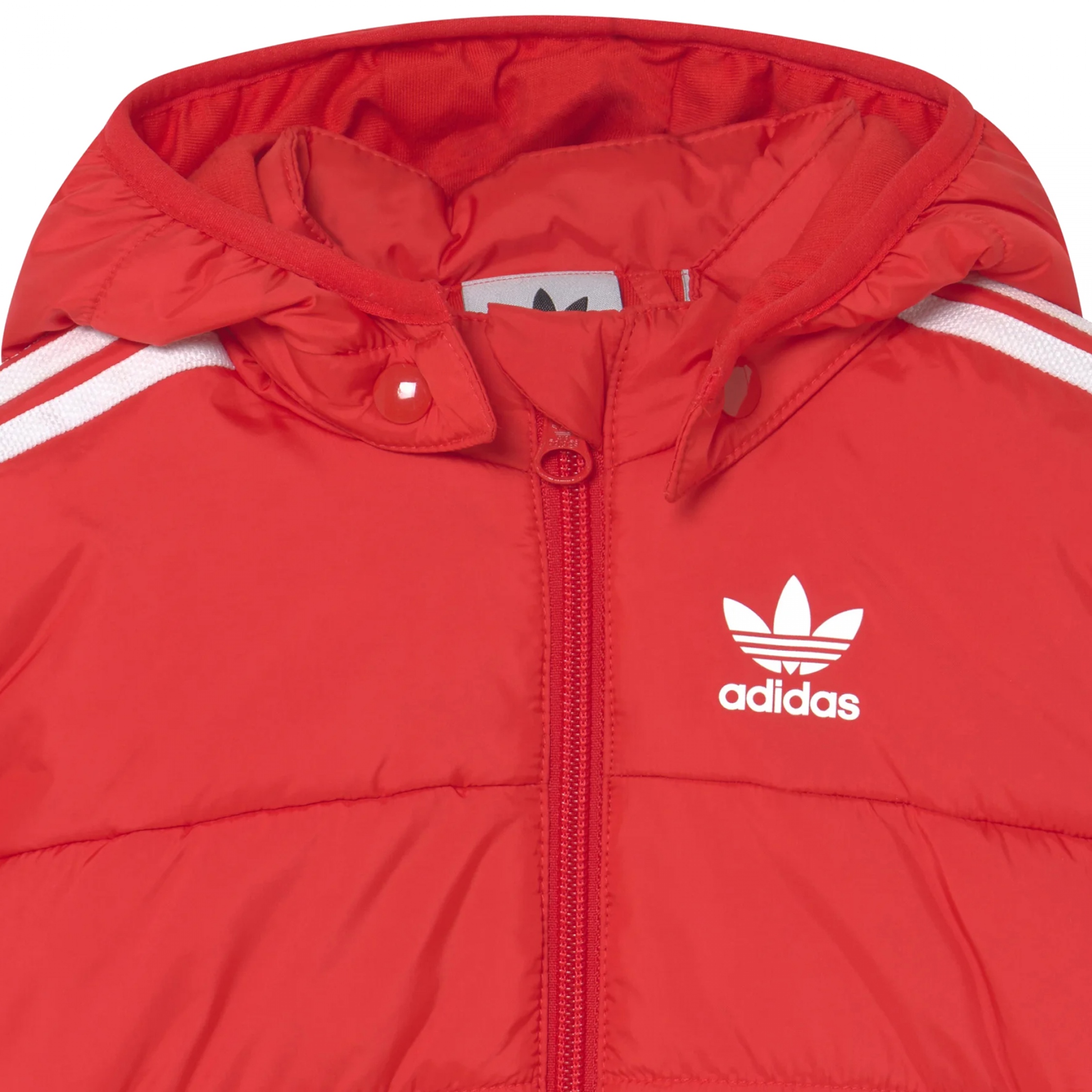 Doudoune à capuche amovible – Imprimé Adidas sur la poitrine – Deux poches latérales – Fermeture à zip – Capuche amovible par boutons pressionnés – Manches longues Couleur / Délavage: Rouge Composition: Polyester Nom: à capuche amovible Manches: Longues Col: Capuche Fermeture: A zip