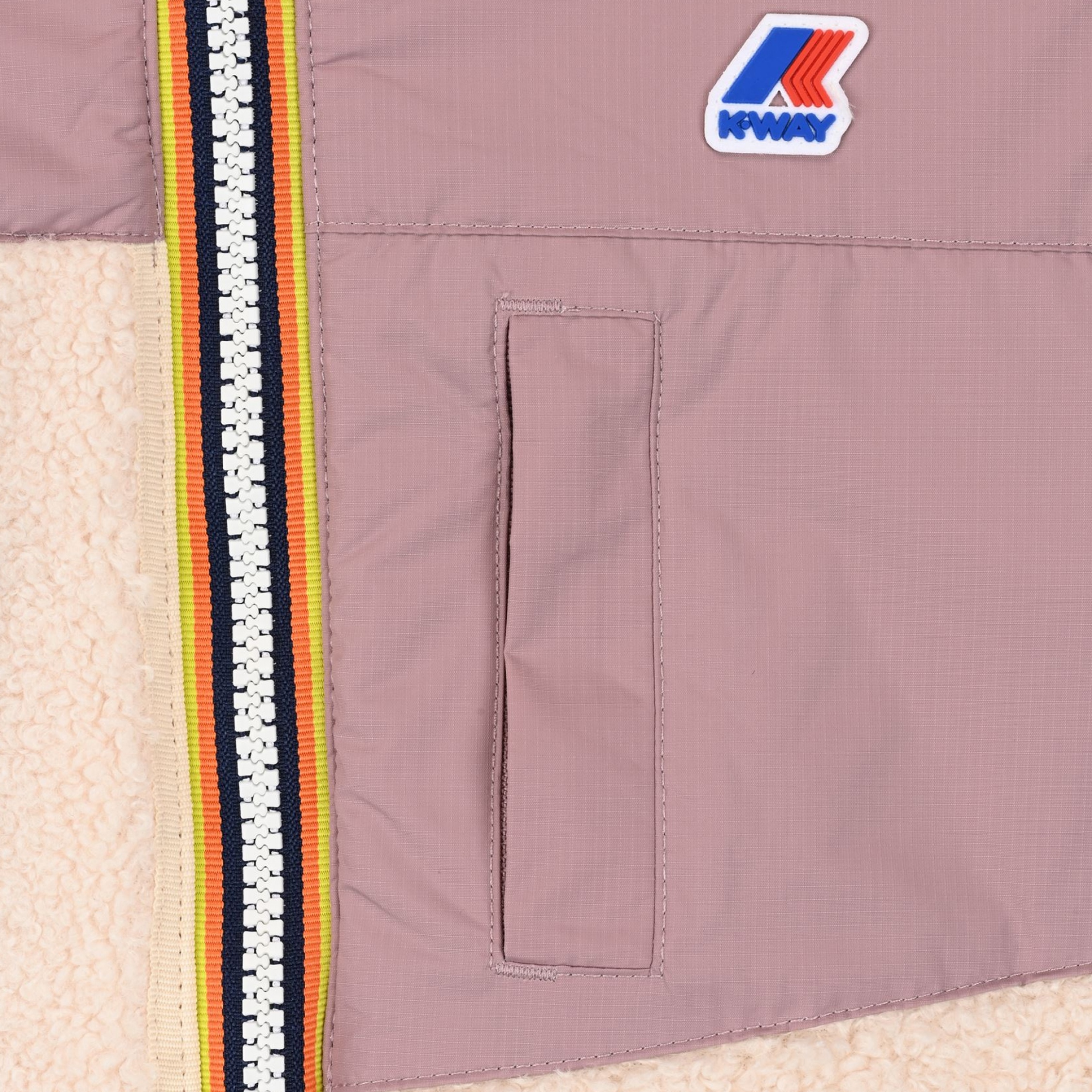 Blouson à capuche – Logo K-way sur la poitrine – Capuche ajustable avec cordons élastiques – Poches latérales Poche plaquée poitrine – Liens de resserrage au bas de la veste – Fermeture zippée – Languette avec logo K-Way Fermeture: A zip Col: Capuche Manches: Longues Nom: à capuche Composition: Nylon Couleur / Délavage: Beige / Violet