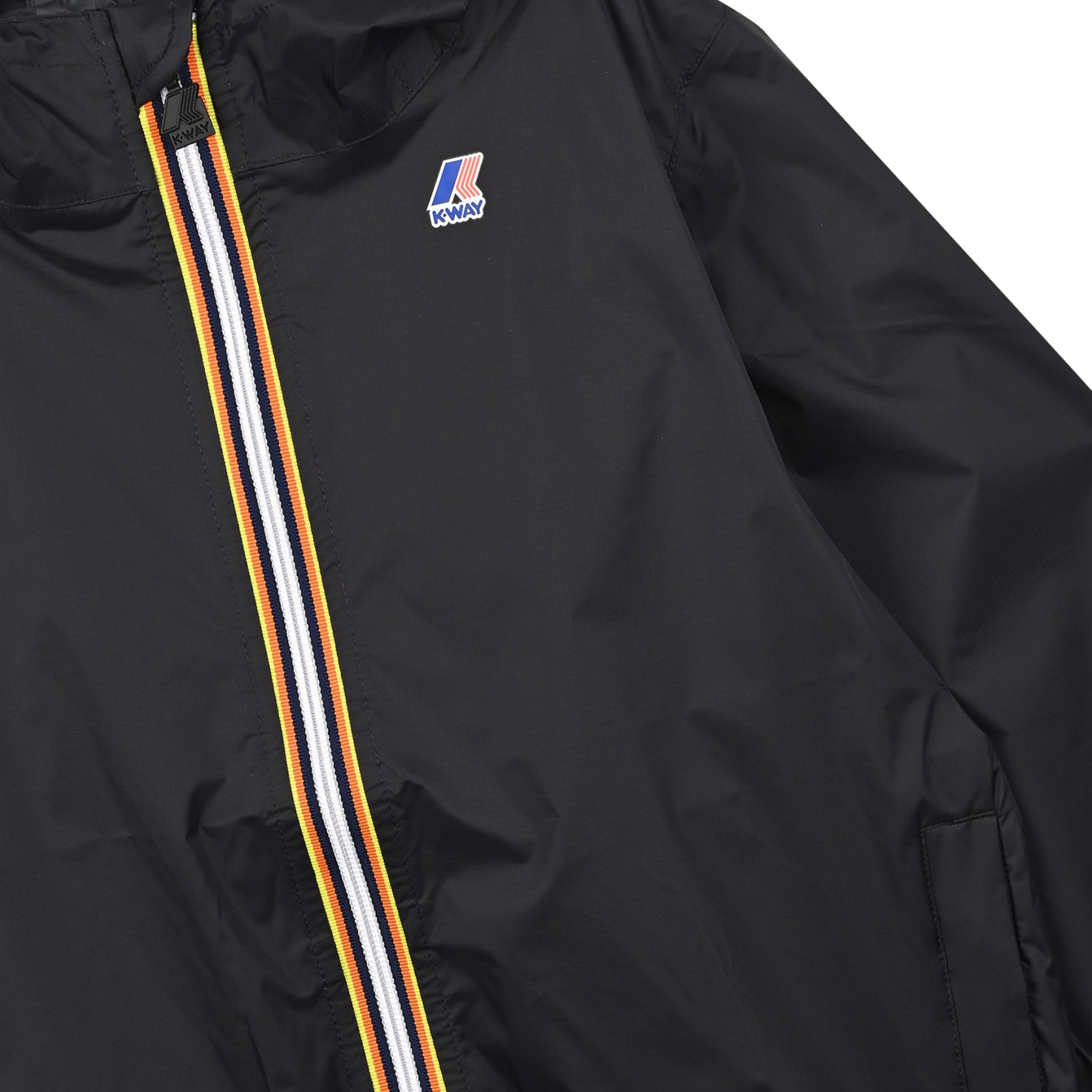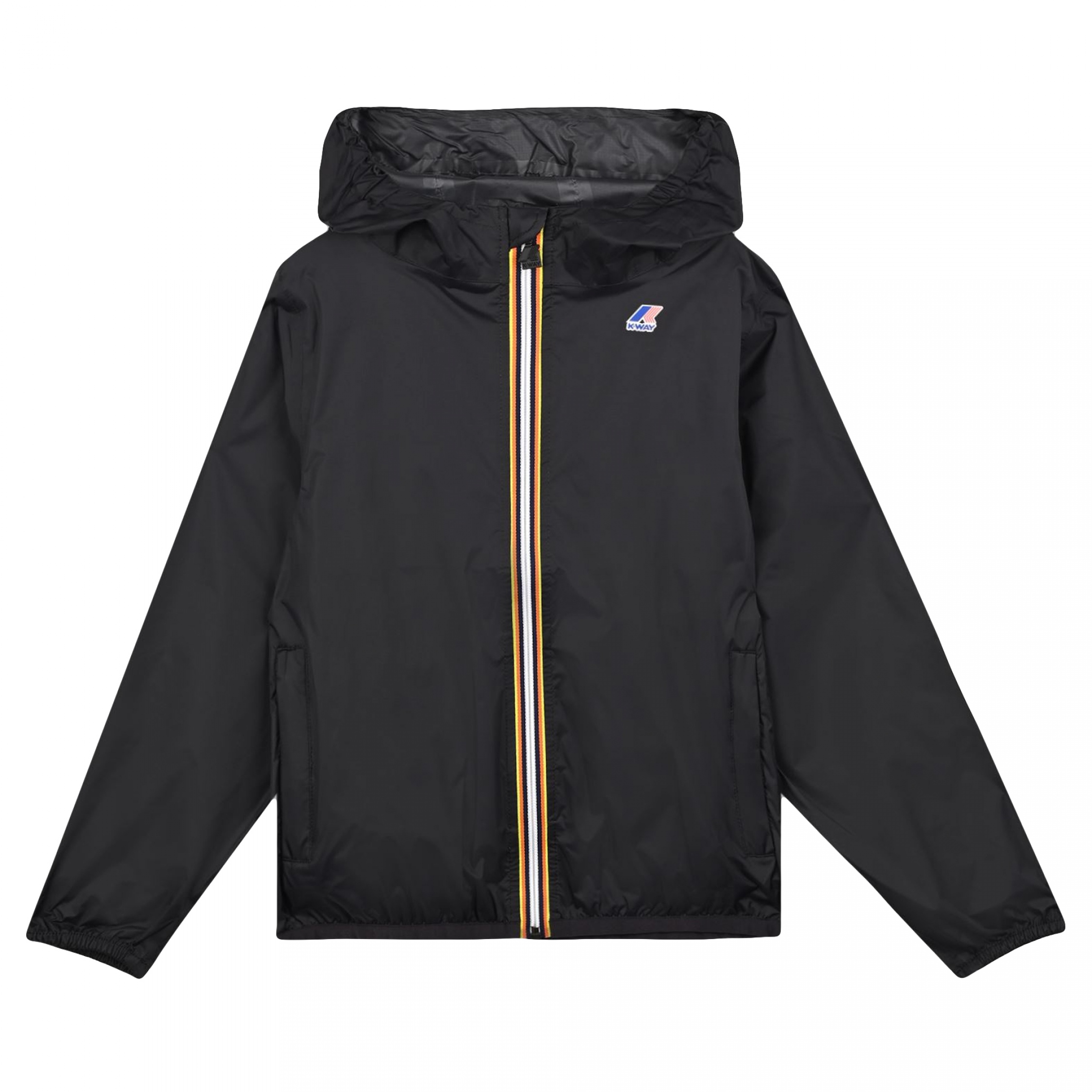 Veste à capuche – Logo K-way sur la poitrine – Deux poches latérales – Fermeture à zip – Col à capuche ajustable – Pochon de rangement Couleur / Délavage: Noir Composition: Nylon Nom: à capuche Manches: Longues Col: Capuche Fermeture: A zip