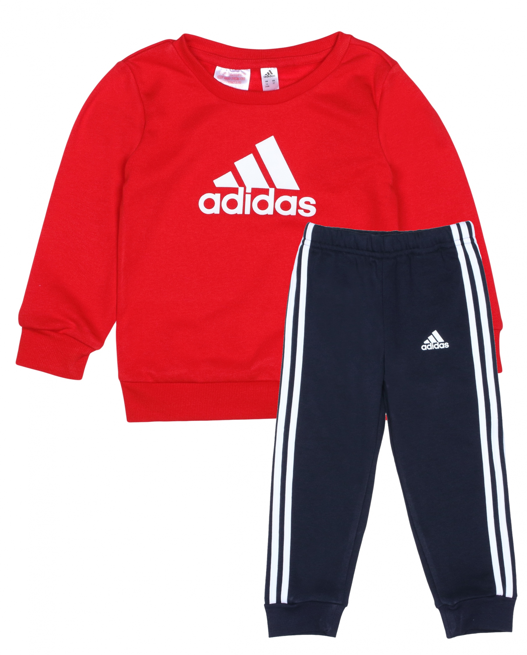 Ensemble 2 pièces Pull : – Imprimé Adidas à l’avant – Manches longues – Col rond Jogging : – Imprimé Adidas sur le côté – Taille élastique Couleur / Délavage: Rouge / bleu Composition: Coton Nom: 2 pièces Manches: Longues Col: Rond Composition 2: Polyester