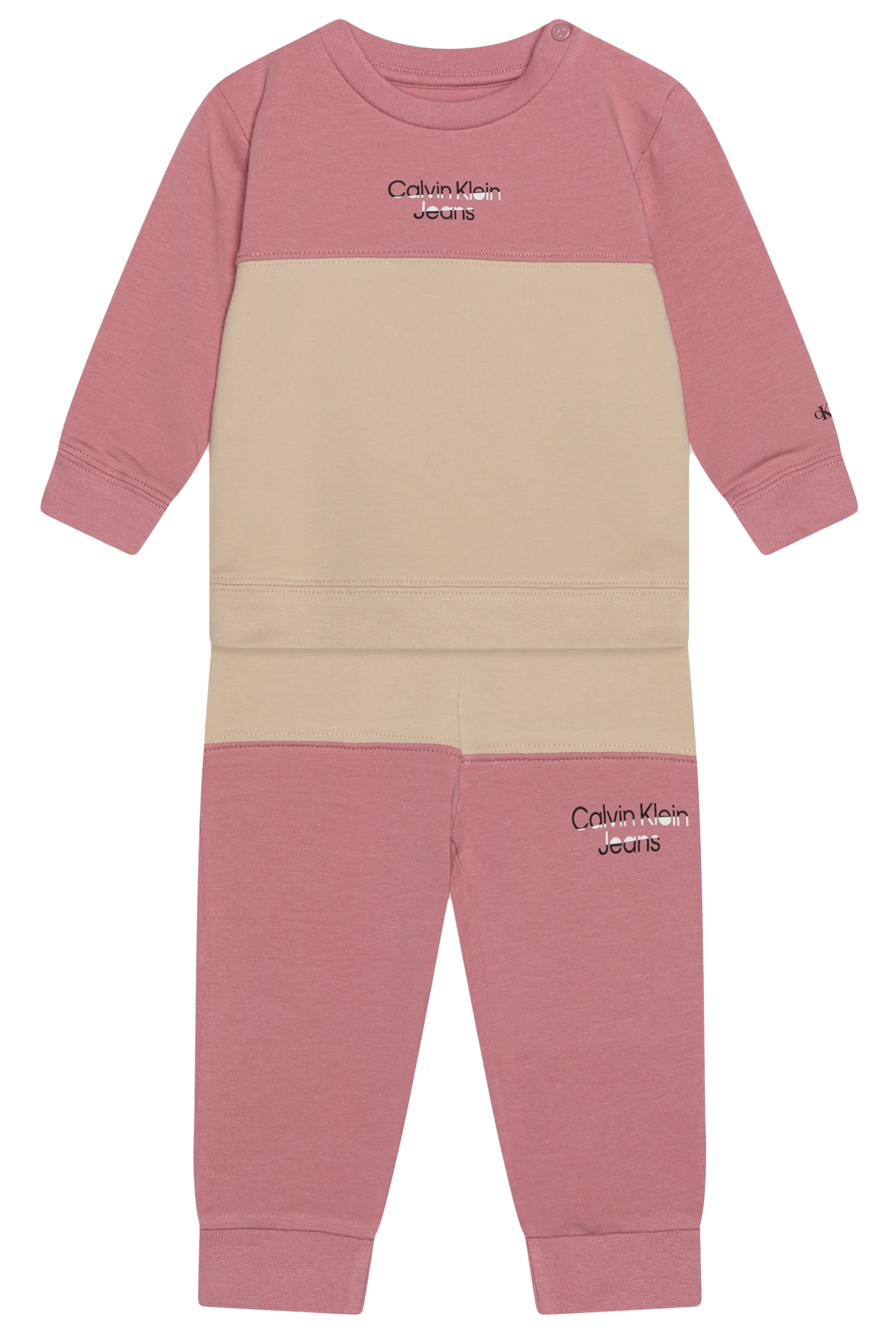 Ensemble deux pièces – Sweat : Calvin Klein imprimé à l’avant – Boutons pressionnés sur l’épaule – Col rond – Manches longues – Jogging : Calvin Klein imprimé à l’avant – Taille élastique avec cordon de resserrage Couleur / Délavage: Rose Nom: 2 pièces Manches: Longues Col: Rond Composition: Coton Composition 2: élasthanne