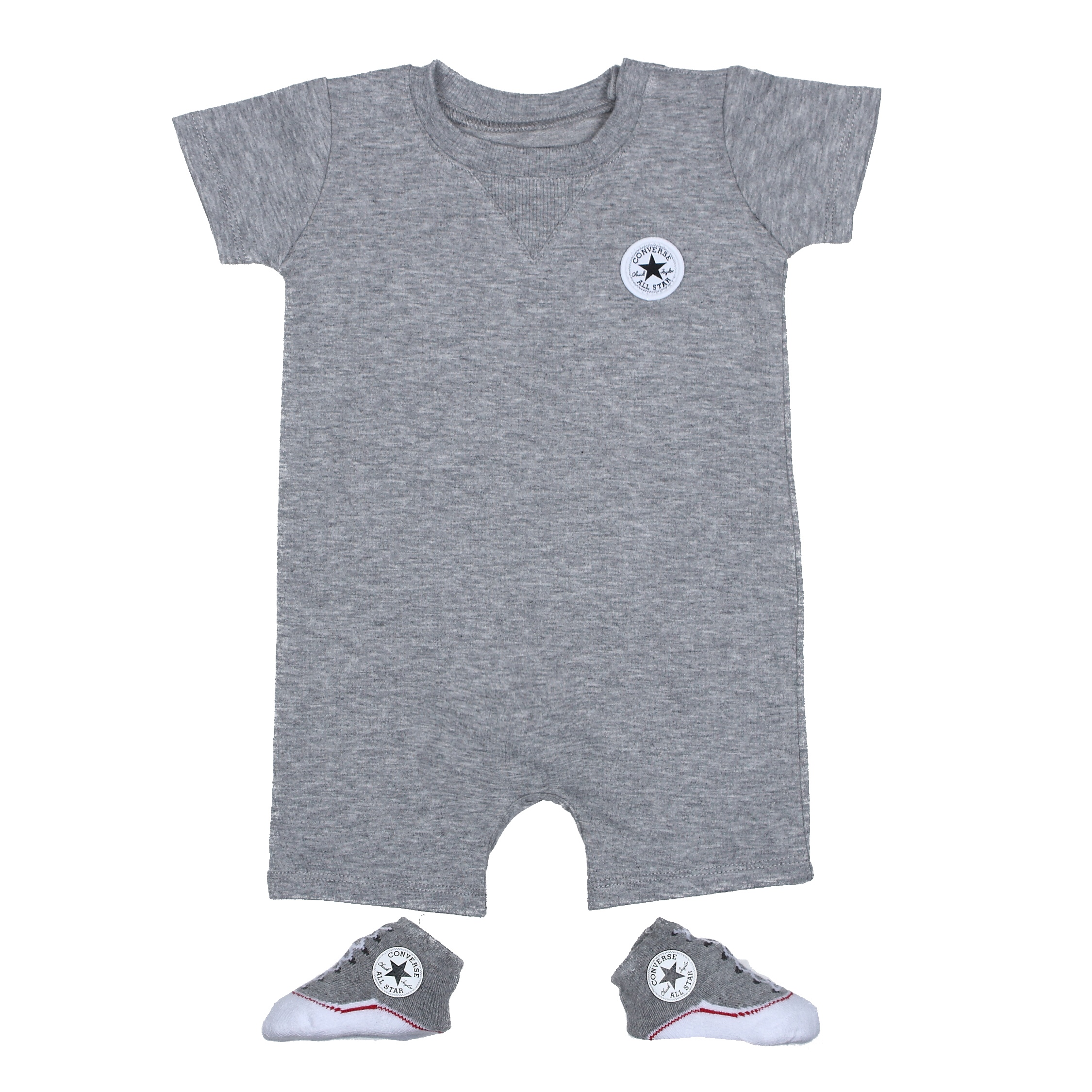Ensemble deux pièces – Body : Imprimé Converse sur la poitrine – Col rond – Manches courtes – Fermeture à boutons pressionnés à l’épaule et à l’entrejambe – Chaussettes motif basket Couleur / Délavage: Gris Nom: 2 pièces Manches: Courtes Col: Rond Composition: Coton Composition 2: Polyester Composition 3: élasthanne