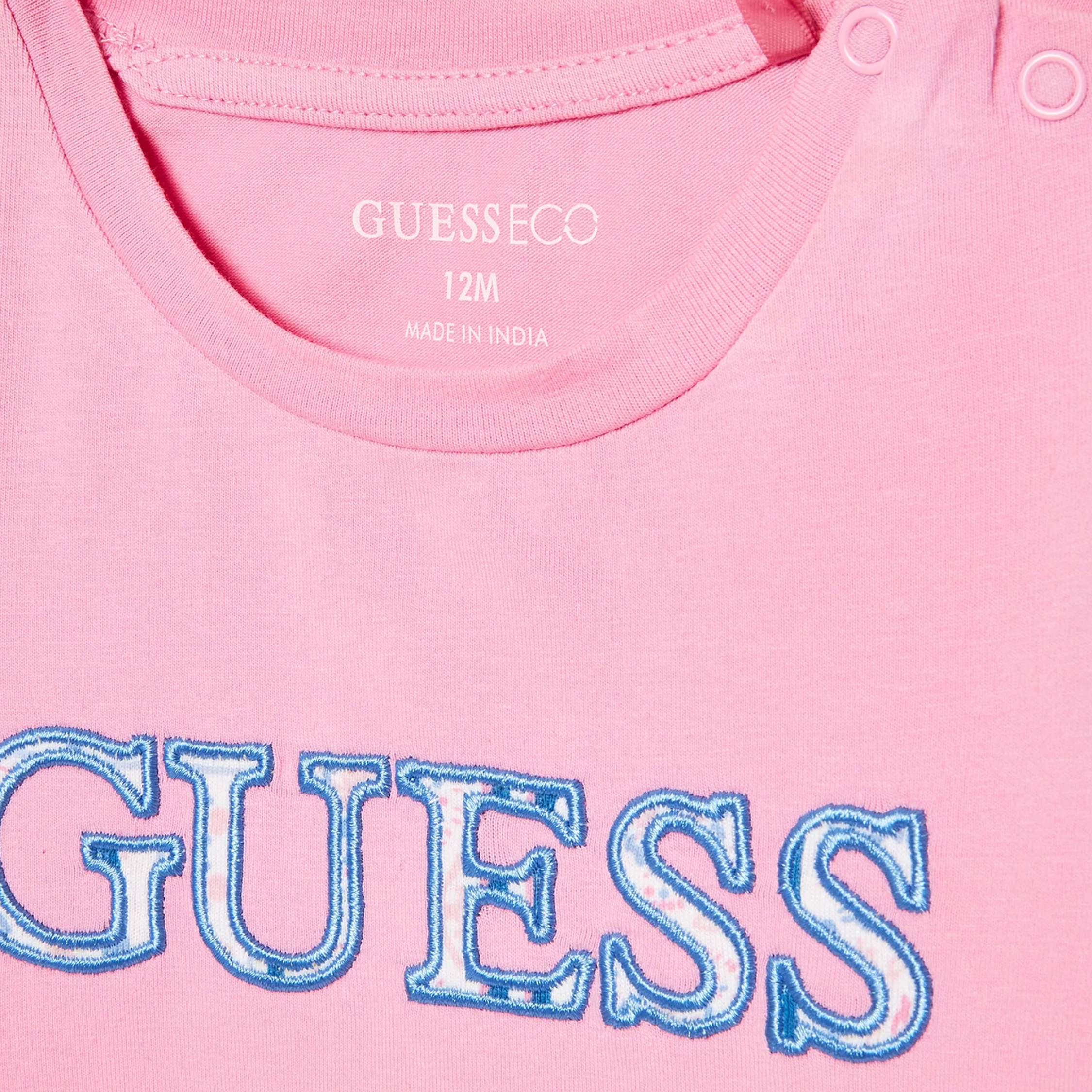 Ensemble deux pièces – T-shirt : Guess brodé à l’avant – Col rond – Boutons pressionnés sur l’épaule – Manches courtes – Short : Guess brodé à l’avant – Taille élastique Couleur / Délavage: Rose Composition: Coton Nom: 2 pièces Manches: Courtes Col: Rond Composition 2: élasthanne