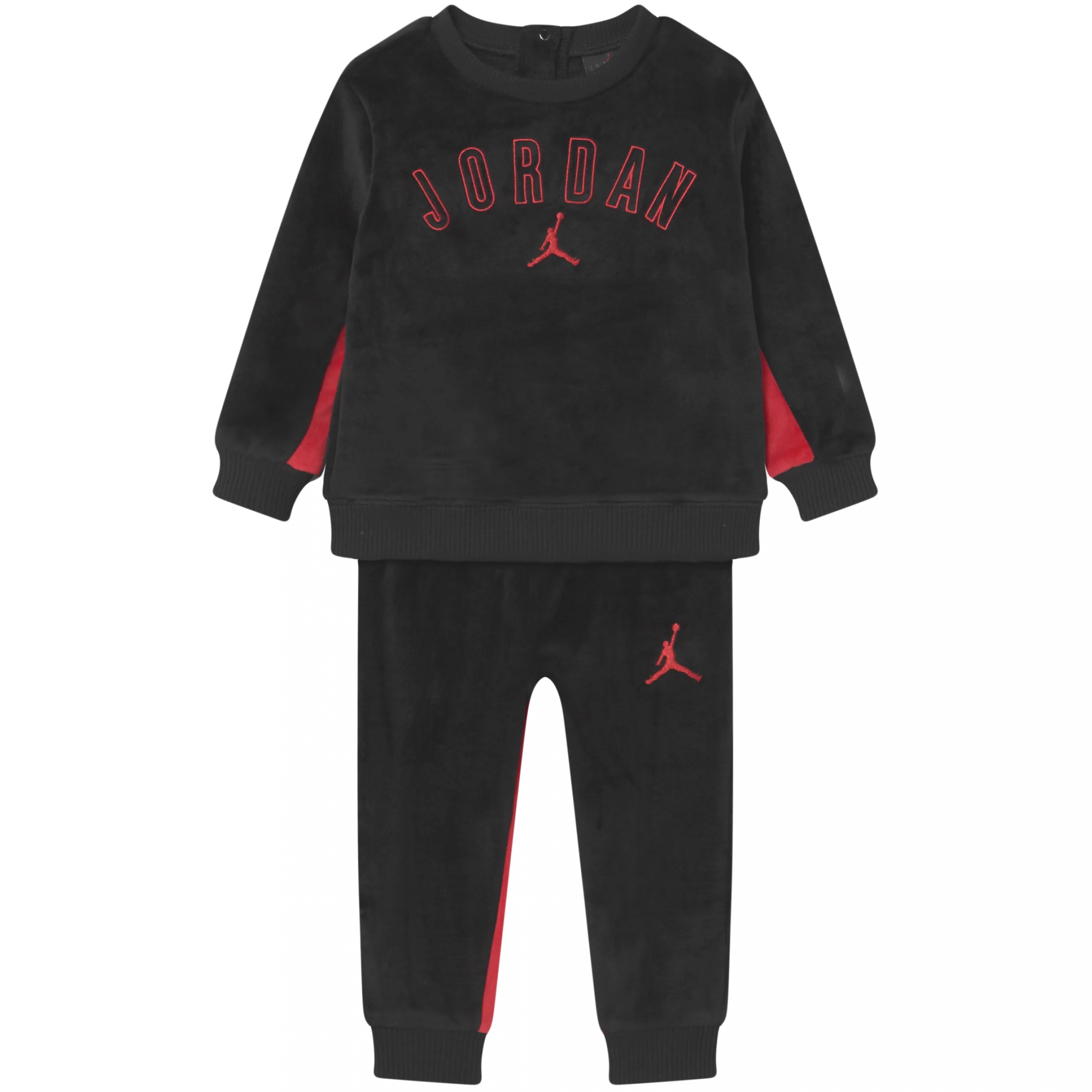 Ensemble deux pièces – Jordan brodé à l’avant – Manches longues – Col rond – Fermeture à boutons sur le dos – Effet velours – Jogging : JumpMan brodé à l’avant – Taille élastique – Effet velours Couleur / Délavage: Noir Nom: 2 pièces Manches: Longues Col: Rond Composition: Polyester Composition 2: élasthanne
