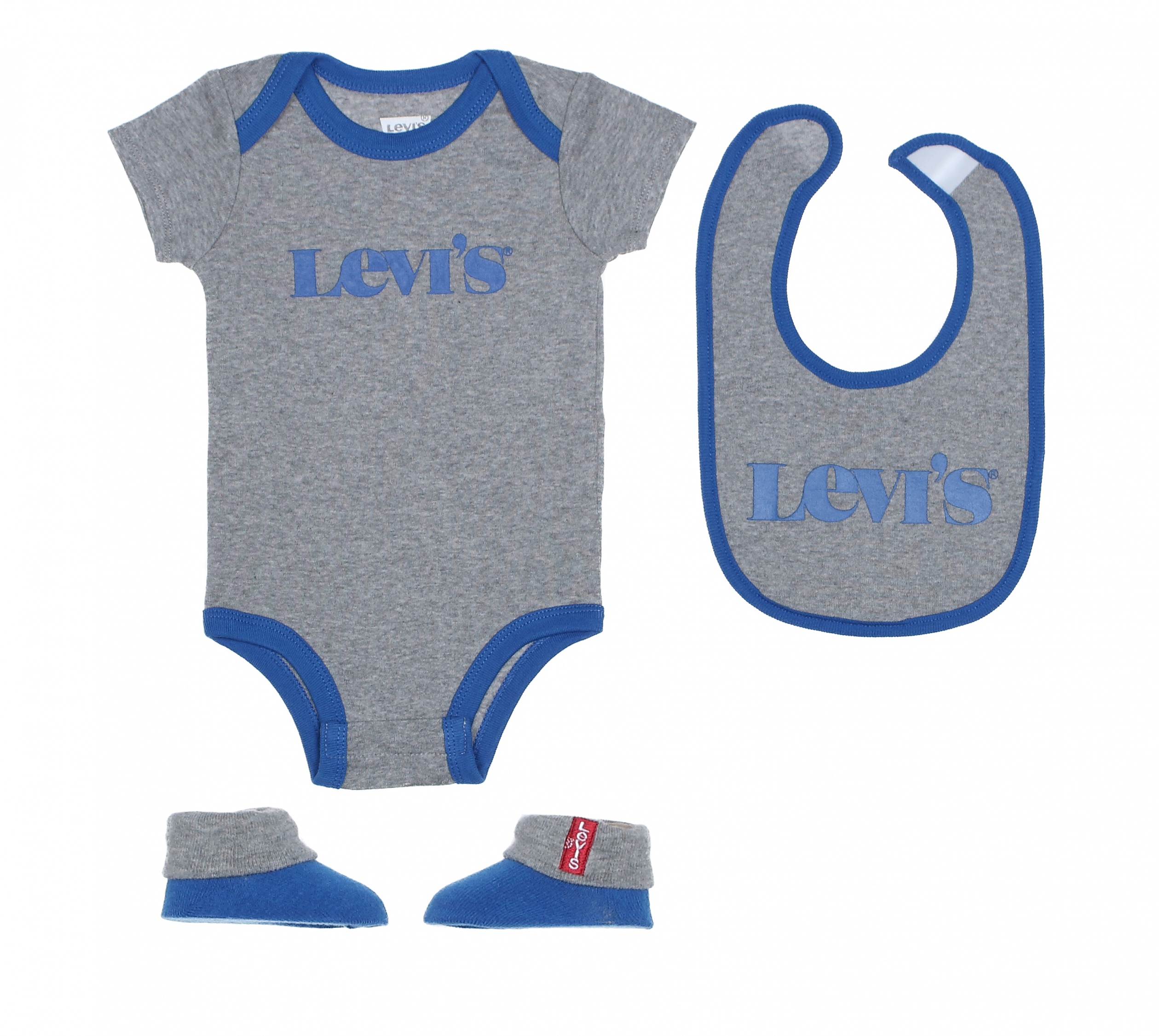 Ensemble Levi’s Kids – En coffret – Inscription Levi’s à l’avant du body et du bavoir – Levi’s brodé sur un chausson – Fermeture du body à boutons pressions entre jambes – Fermeture bavoir à scratch Couleur / Délavage: Gris / bleu Composition: Coton Nom: en coffret Manches: Courtes Col: Rond