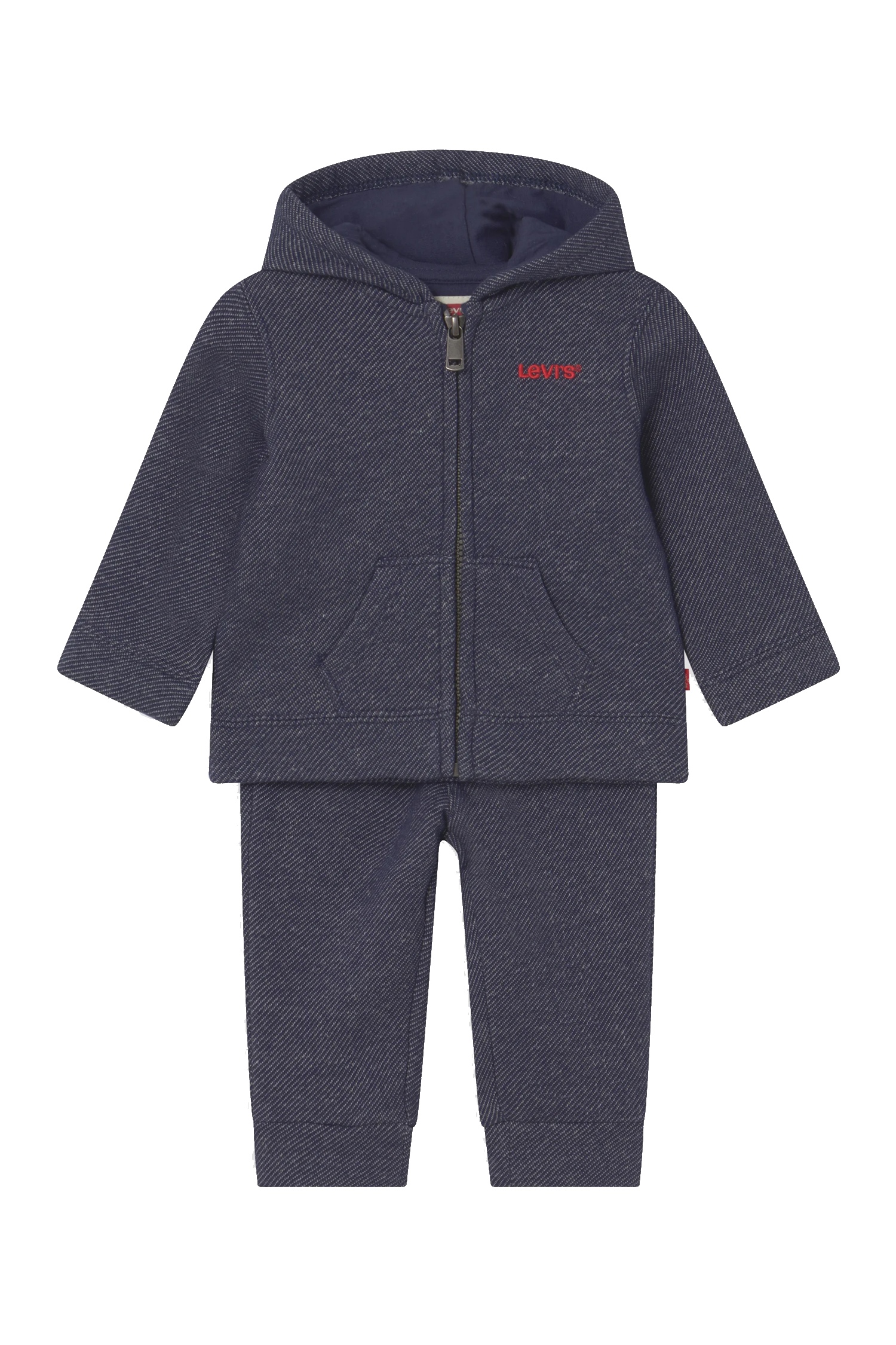 Ensemble deux pièces – Levi’s brodé sur la poitrine – Manches longues – Col à capuche – Fermeture à zip – Deux poches latérales – Jogging à taille élastique Couleur / Délavage: Bleu foncé Nom: 2 pièces Manches: Longues Col: Capuche Composition: Coton Composition 2: Polyester