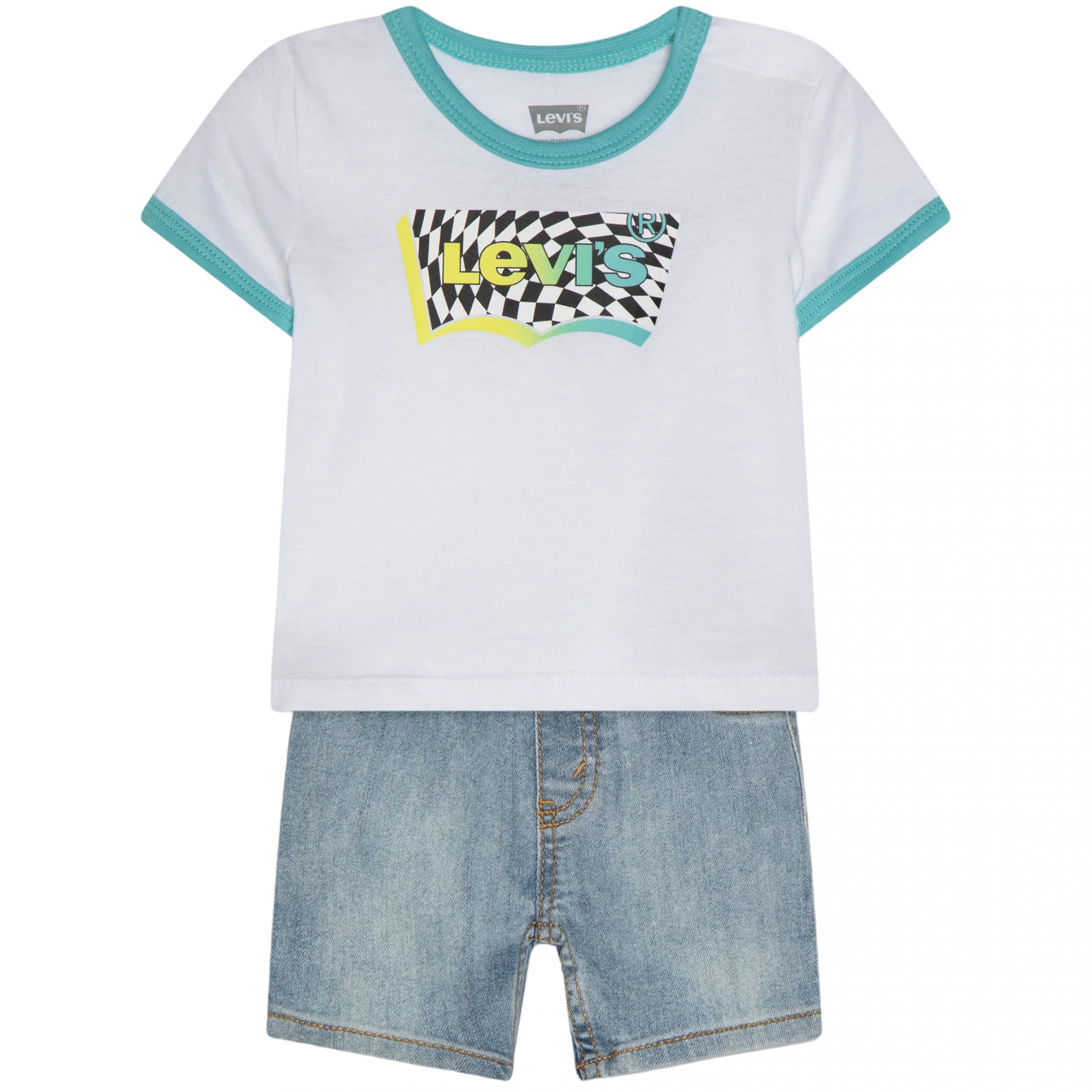 Ensemble deux pièces – T-shirt : Imprimé Levi’s à l’avant – Boutons pressionnés sur l’épaule – Col rond – Manches courtes – Short : Taille élastique – Deux poches à l’arrière Couleur / Délavage: Blanc Composition: Coton Nom: 2 pièces Manches: Courtes Col: Rond Composition 2: Polyester