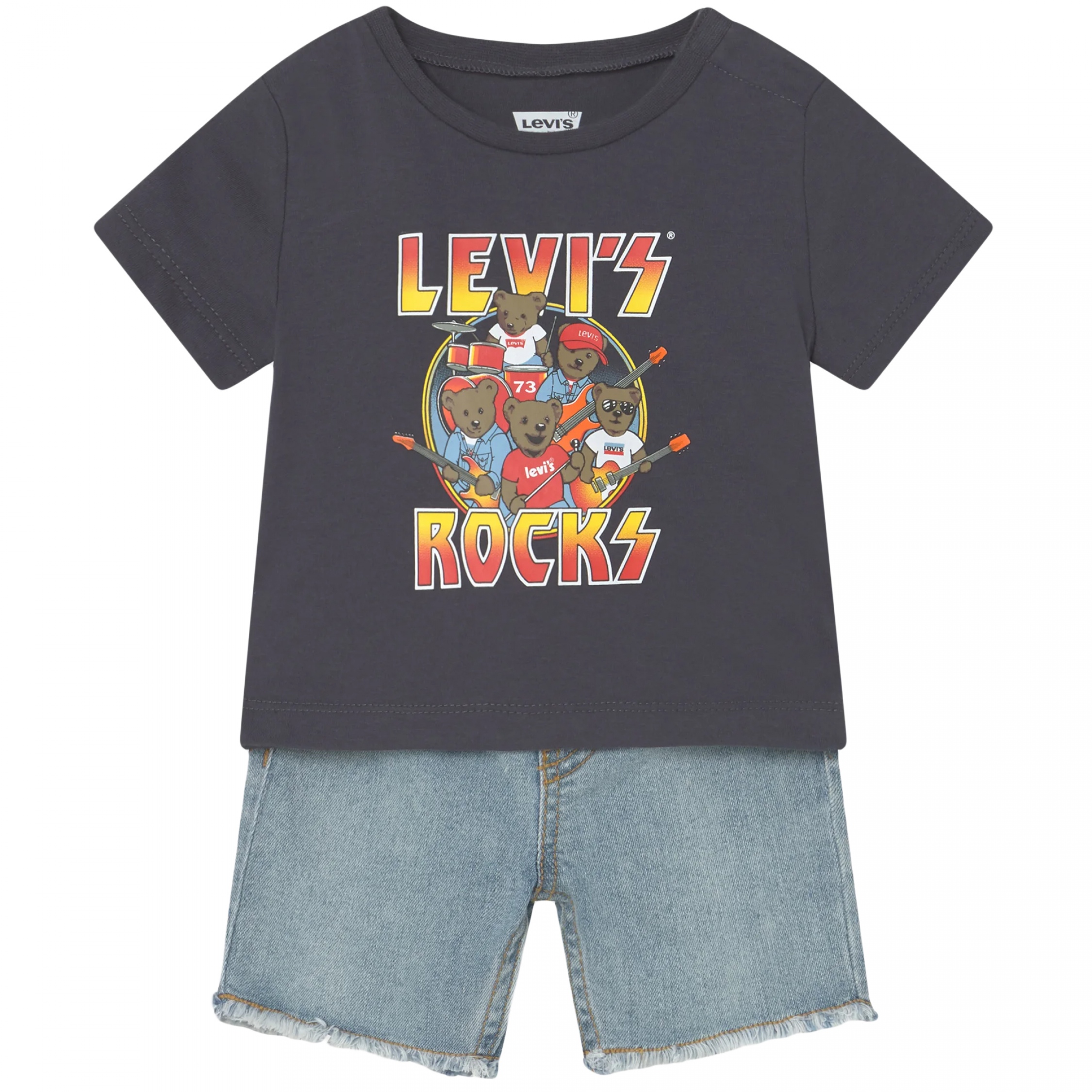 Ensemble deux pièces – T-shirt : Imprimé Levi’s à l’avant – Col rond – Manches courtes – Short : Taille élastique – Deux poches à l’arrière – Effilochés sur le bras Couleur / Délavage: Bleu Nom: 2 pièces Manches: Courtes Col: Rond Composition: Coton Composition 2: Polyester
