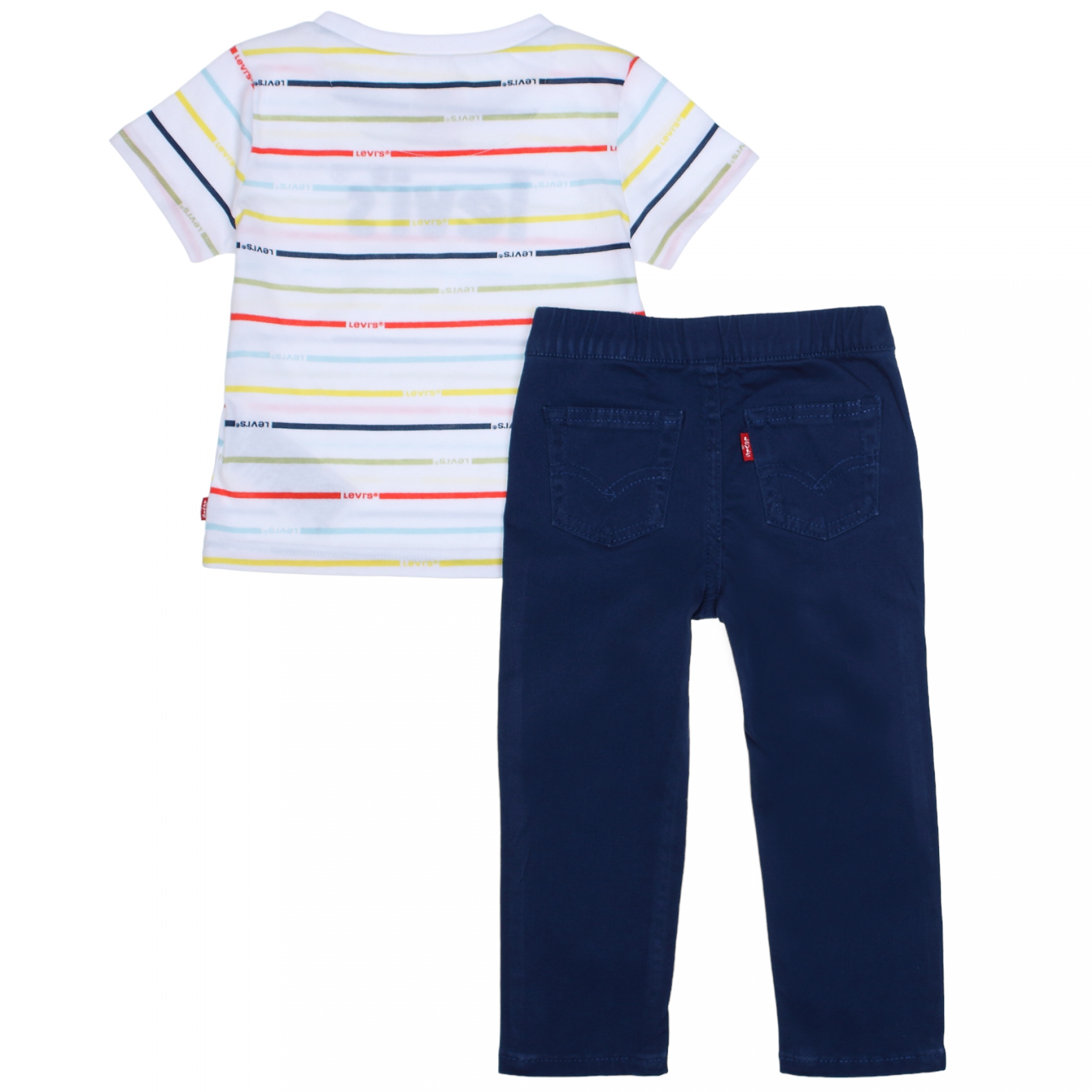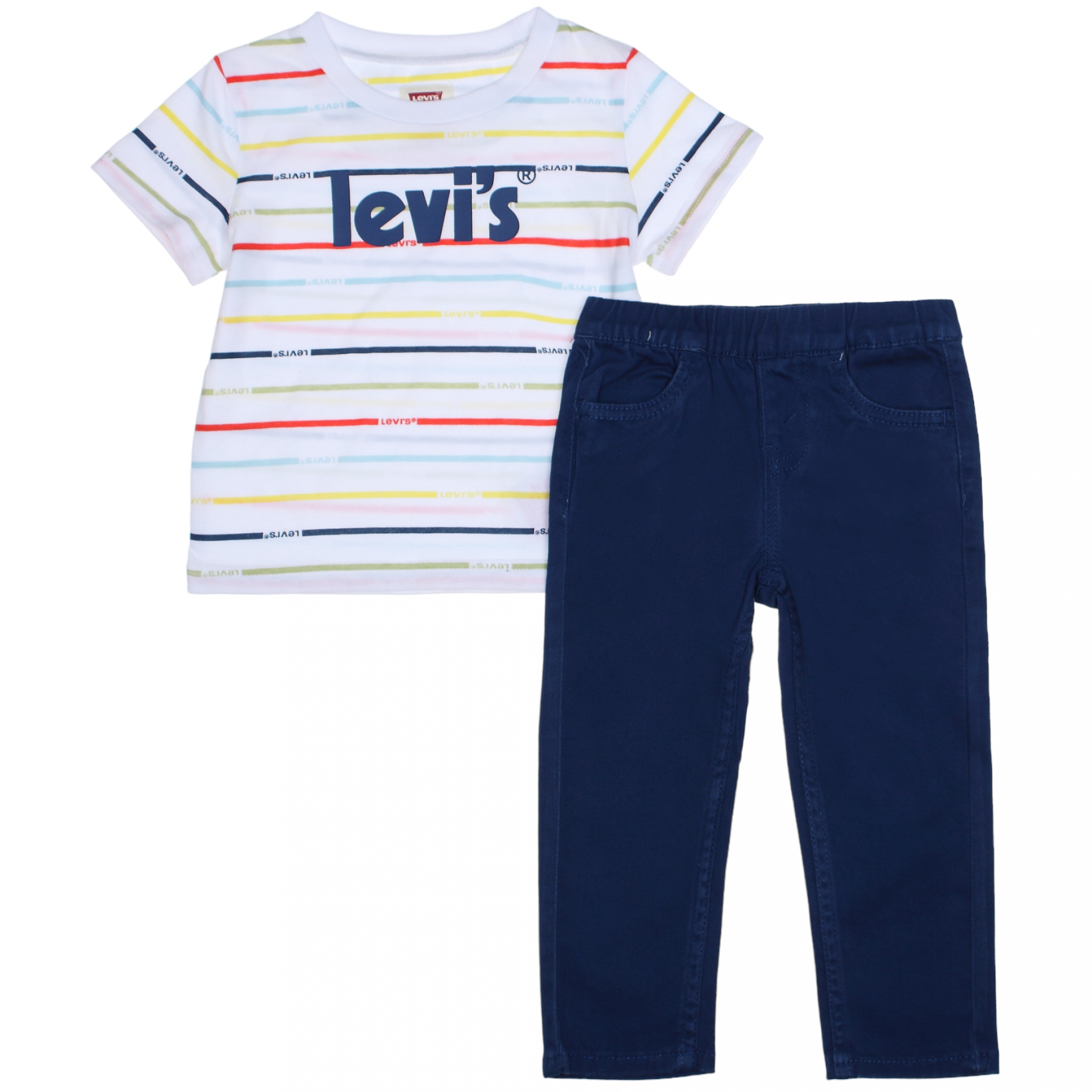 Ensemble deux pièces T-shirt : – Imprimé Levi’s à l’avant – Manches courtes – Col rond Pantalon : – Deux poches à l’avant – Deux poches à l’arrière – Taille élastique Couleur / Délavage: Blanc / Bleu Nom: 2 pièces Manches: Courtes Col: Rond Composition: Coton Composition 2: Polyester