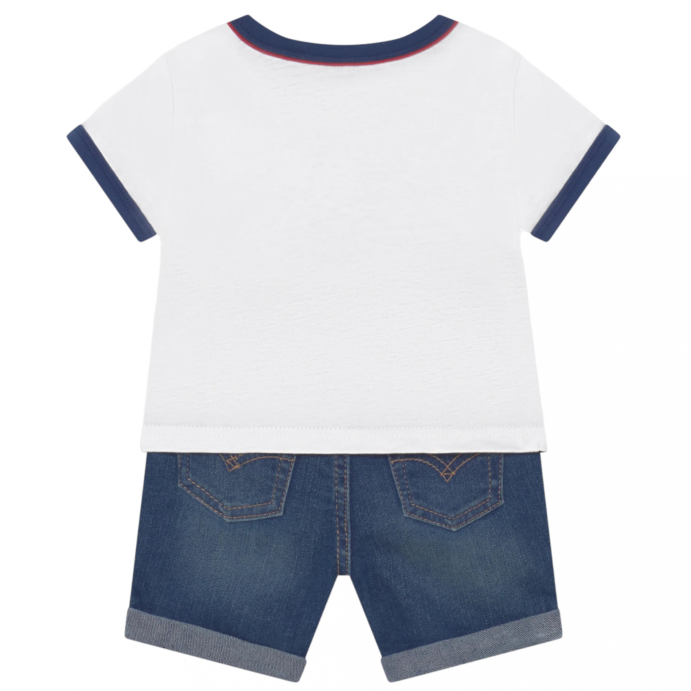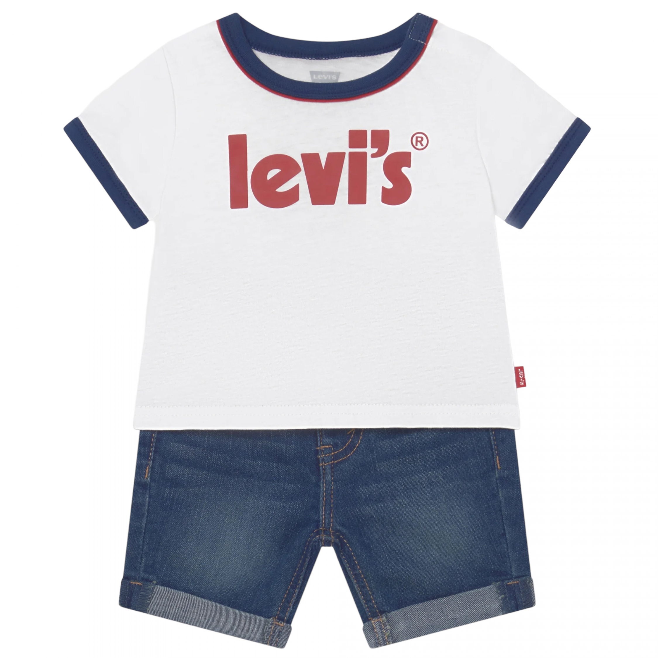 Ensemble deux pièces – T-shirt : Levi’s imprimé à l’avant – Boutons pressionnés sur l’épaule – Manches courtes – Col rond – Short : Taille élastique – Fermeture à bouton Couleur / Délavage: Blanc / Bleu Composition: Coton Nom: 2 pièces Manches: Courtes Col: Rond Composition 2: Polyester