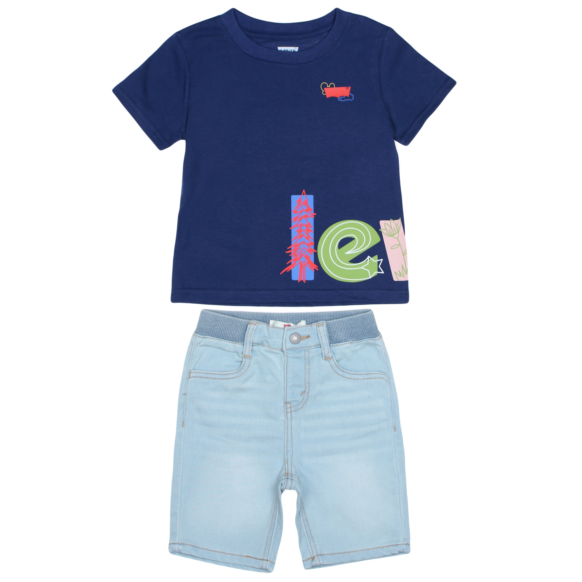 Ensemble 2 pièces T-shirt : – Imprimé Levi’s – Manches courtes – Col rond Short : – Deux poches à l’avant – Deux poches à l’arrière – Fermeture à glissière -Taille élastique Couleur / Délavage: Bleu Nom: 2 pièces Manches: Courtes Col: Rond Composition: Coton Composition 2: Polyester