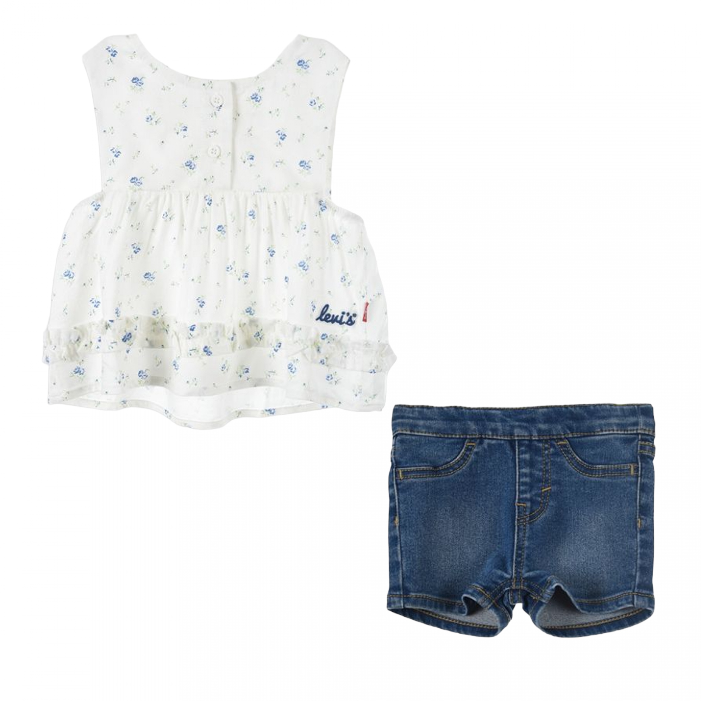 Ensemble 2 pièces T-shirt : – Levi’s brodé sur le côté – Sans manche – Col rond – Fermeture à boutons à l’avant Short : – Deux fausses poches à l’avant – Deux poches à l’arrière – Taille élastique Couleur / Délavage: Blanc Nom: 2 pièces Manches: Sans Col: Rond Composition: Coton Composition 2: Polyester Composition 3: élasthanne