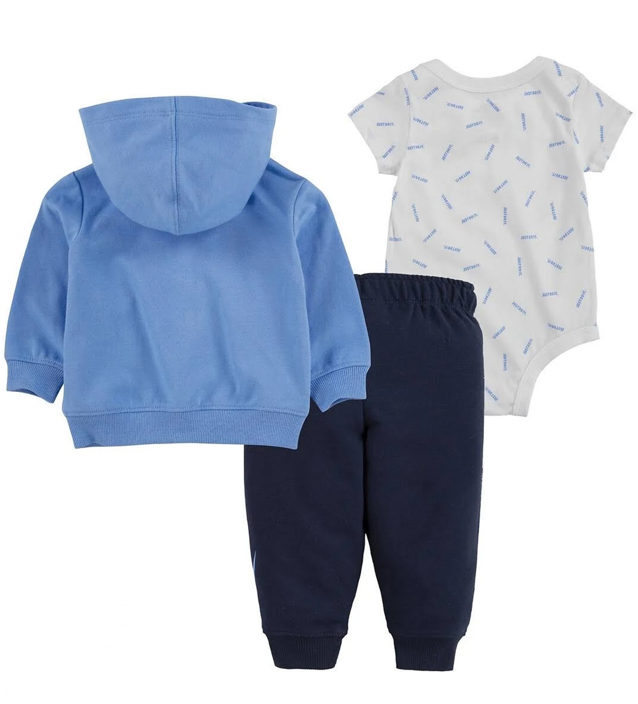 Ensemble trois pièces – Gilet : Imprimé Nike à l’avant – Deux poches latérales – Col capuche – Body : Imprimé Nike sur la poitrine – Manches courtes – Bouton pressionnés à l’entrejambe – Jogging : Imprimé Nike à l’avant – Taille élastique Couleur / Délavage: Bleu foncé / blanc Composition: Coton Nom: 3 pièces Manches: Longues Col: Capuche Composition 2: Polyester