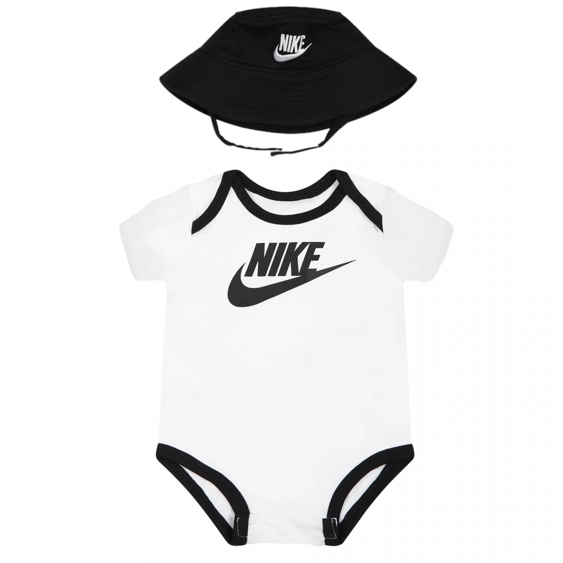 Ensemble 2 pièces Body : – Imprimé Nike à l’avant – Manches courtes – Fermeture à boutons pressionnés à l’entrejambe Bonnet : – Logo Nike à l’avant Couleur / Délavage: Blanc Composition: Coton Nom: 2 pièces Manches: Courtes Col: Rond