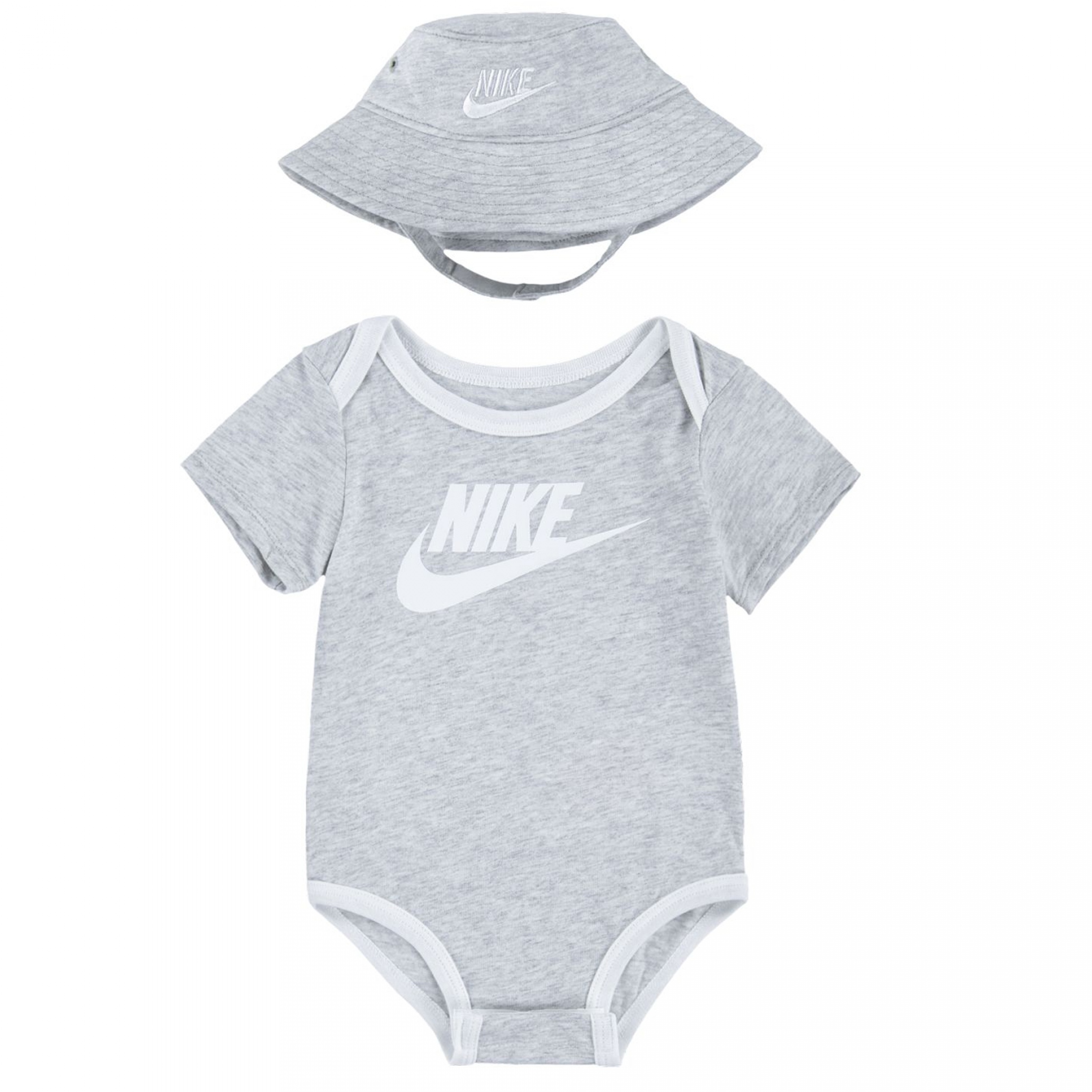 Ensemble 2 pièces Body : – Imprimé Nike à l’avant – Manches courtes – Fermeture à boutons pressionnés à l’entrejambe Bonnet : – Logo Nike à l’avant Couleur / Délavage: Gris Nom: 2 pièces Manches: Courtes Col: Rond Composition: Coton