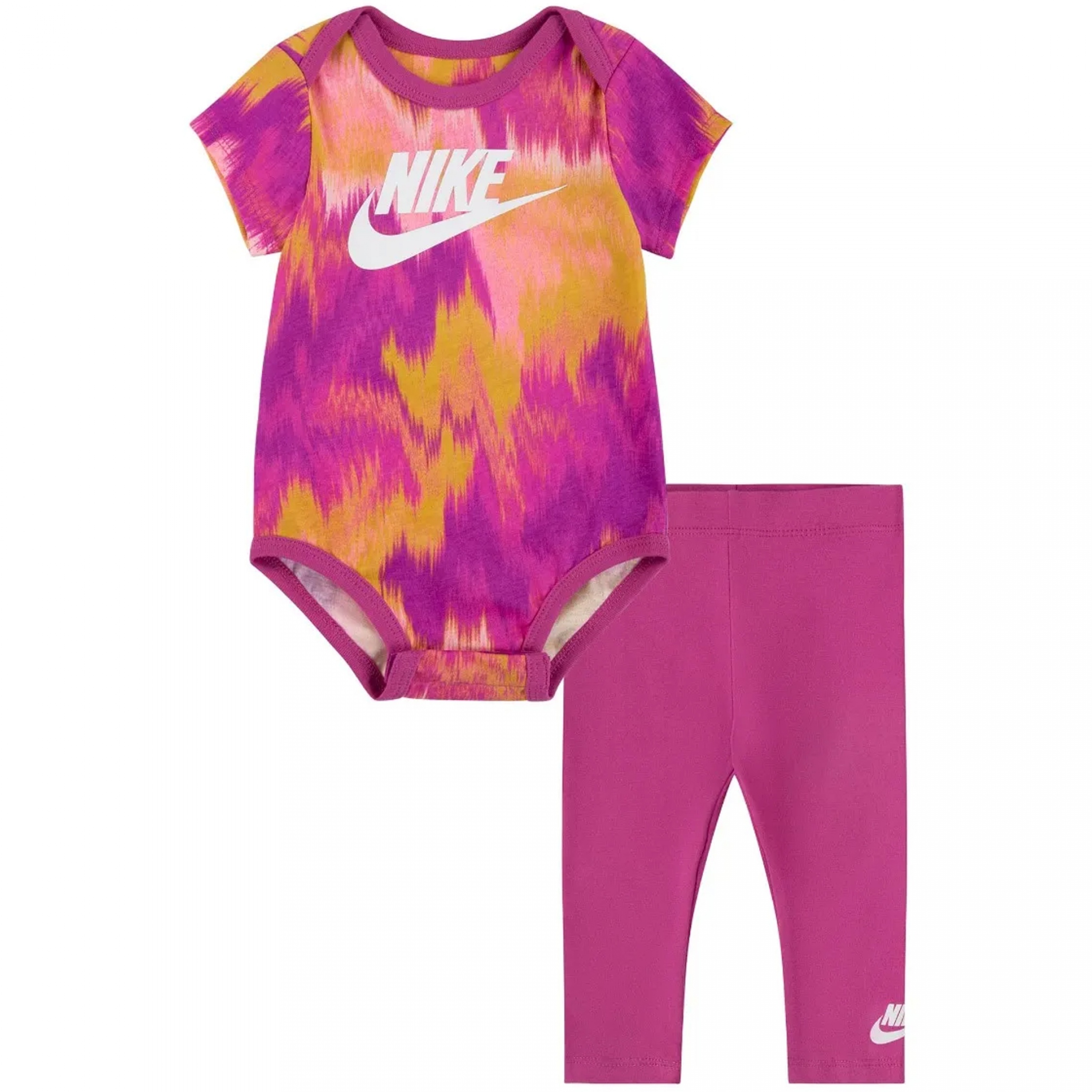 Ensemble 2 pièces Body : – Imprimé Nike à l’avant – Manches courtes – Col rond – Fermeture à boutons pressionnés à l’entre-jambe Legging : – Imprimé Nike à la cheville – Taille élastique Couleur / Délavage: Rose Composition: Coton Nom: 2 pièces Manches: Courtes Col: Rond