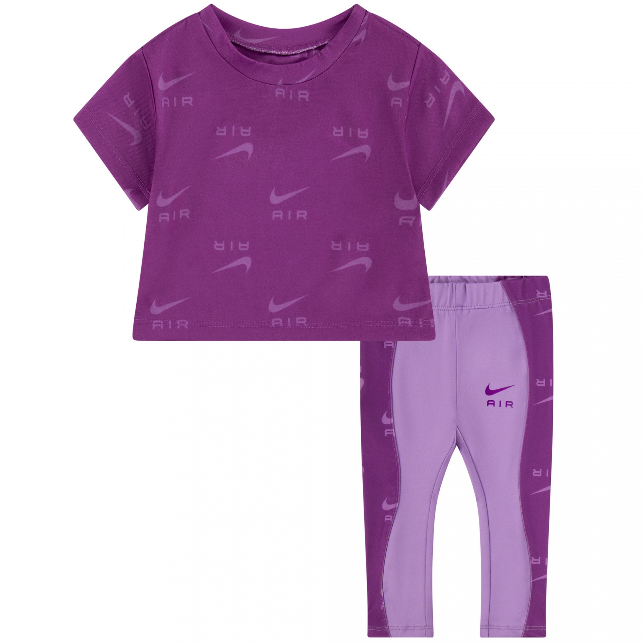 Ensemble deux pièces – T-shirt : Imprimé Nike à l’avant – Col rond – Manches courtes – Short : Nike imprimé à l’avant – Taille élastique Couleur / Délavage: Violet Nom: 2 pièces Manches: Courtes Col: Rond Composition: Coton Composition 2: Polyester