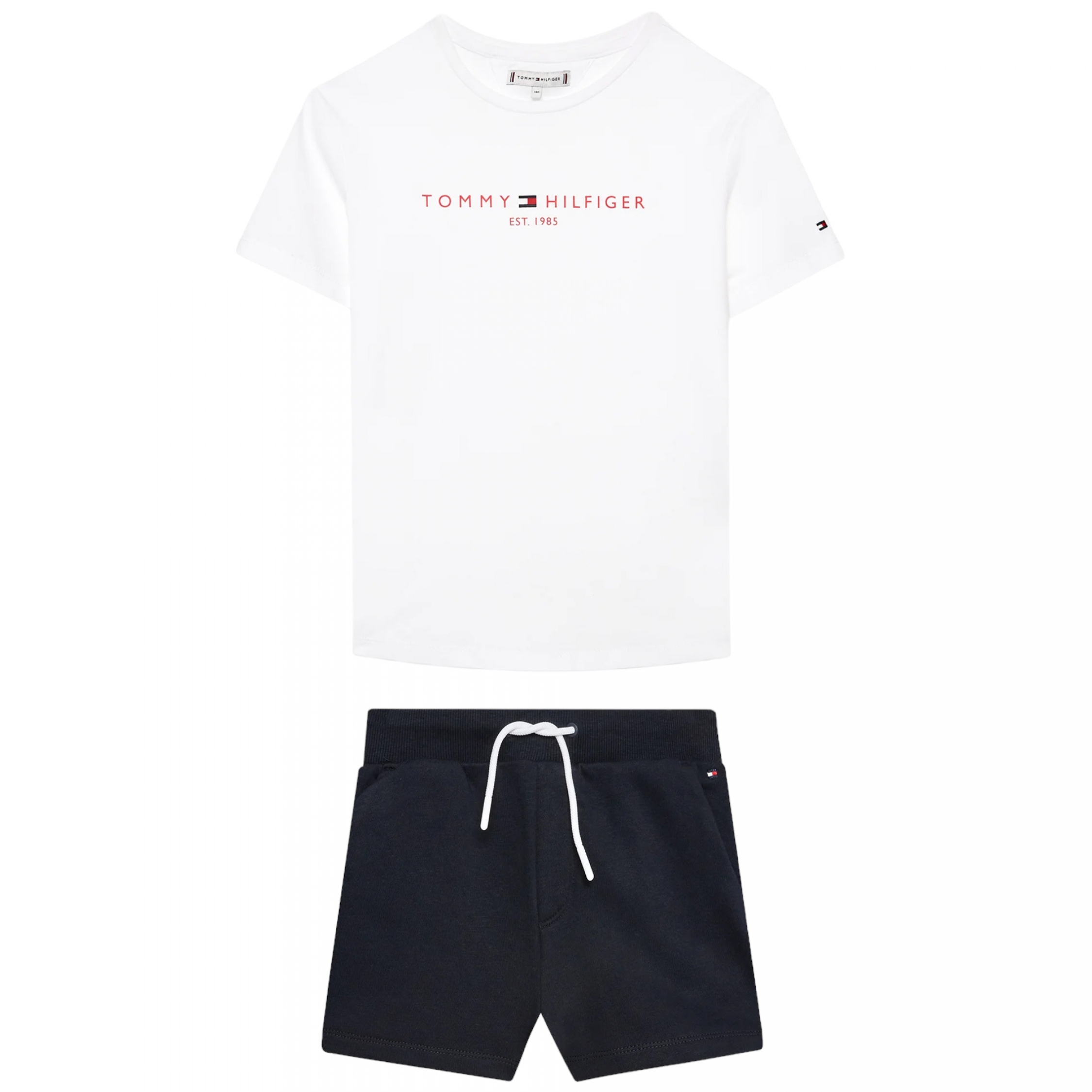 Ensemble 2 pièces T-shirt : – Imprimé Tommy Hilfiger à l’avant – Manches courtes – Col rond Short : – Drapeau Tommy Hilfiger sur le côté – Taille élastique avec lacets de resserrage Couleur / Délavage: Blanc / Bleu foncé Nom: 2 pièces Manches: Courtes Col: Rond Composition: Coton