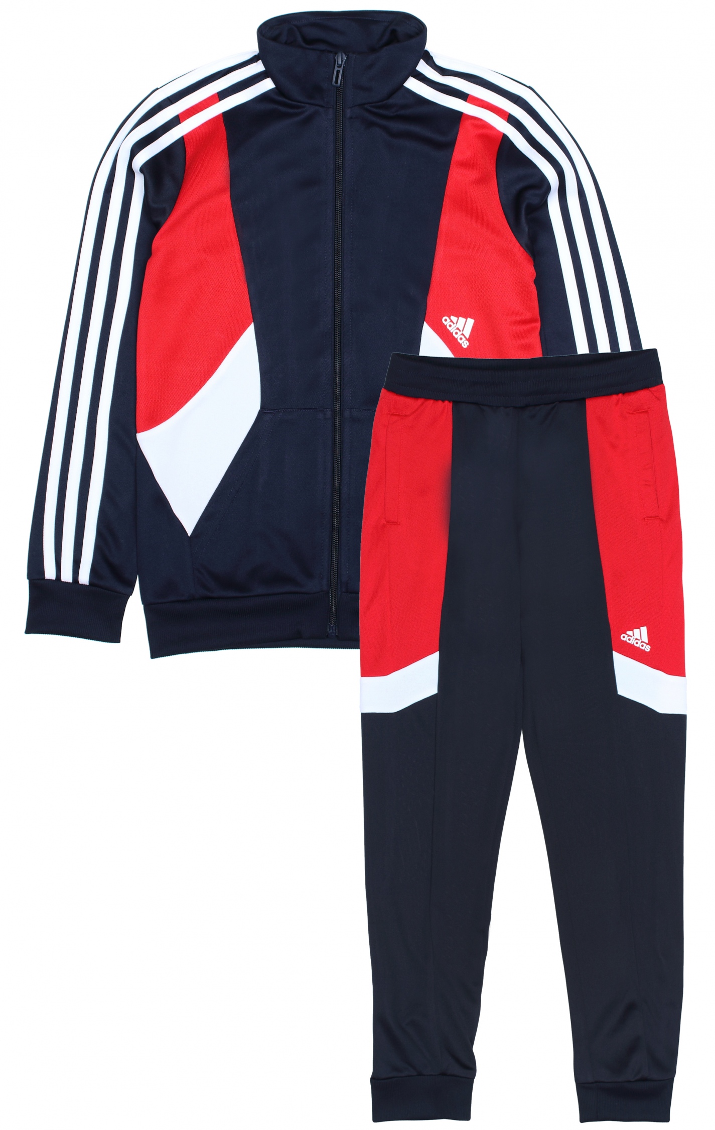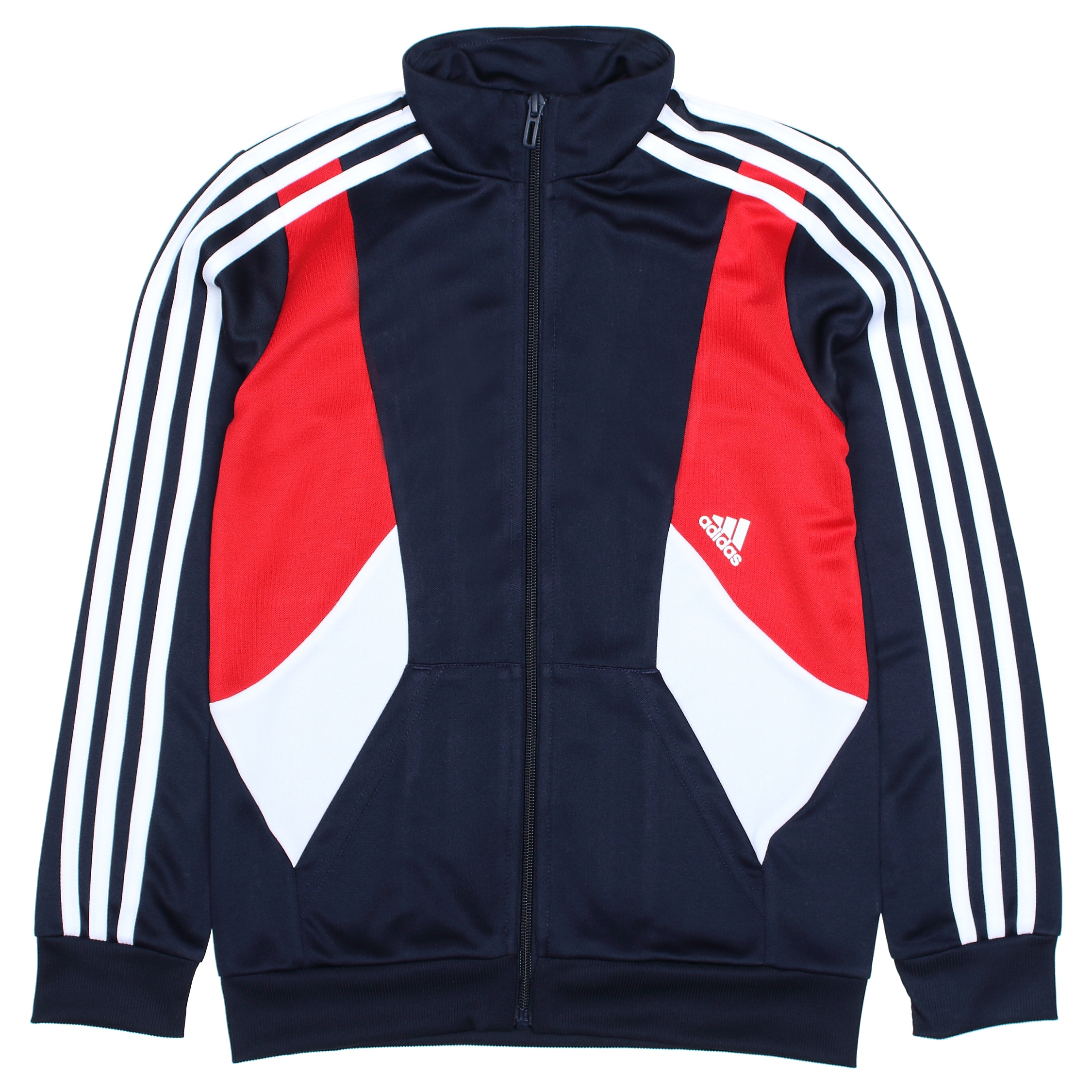 Ensemble deux pièces – Gilet : Adidas imprimé à l’avant – Deux poches latérales – Manches longues – Col montant – Fermeture à zip – Jogging : Adidas imprimé à l’avant – Deux poches latérales – Taille élastique Couleur / Délavage: Bleu foncé Nom: 2 pièces Manches: Longues Col: Montant Composition: Polyester Composition 2: élasthanne