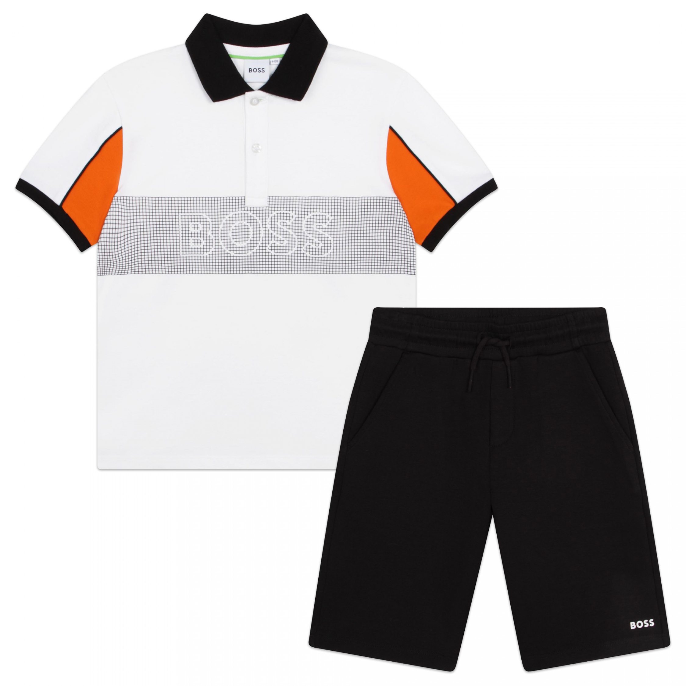 Ensemble deux pièces – Polo : Inscription Boss à l’avant – Manches courtes – Col polo boutonné – Short : Boss imprimé à l’avant – Deux poches latérales – Taille élastique avec lacet de resserrage Couleur / Délavage: Noir / Blanc Nom: 2 pièces Manches: Courtes Col: Polo Composition: Coton Composition 2: élasthanne