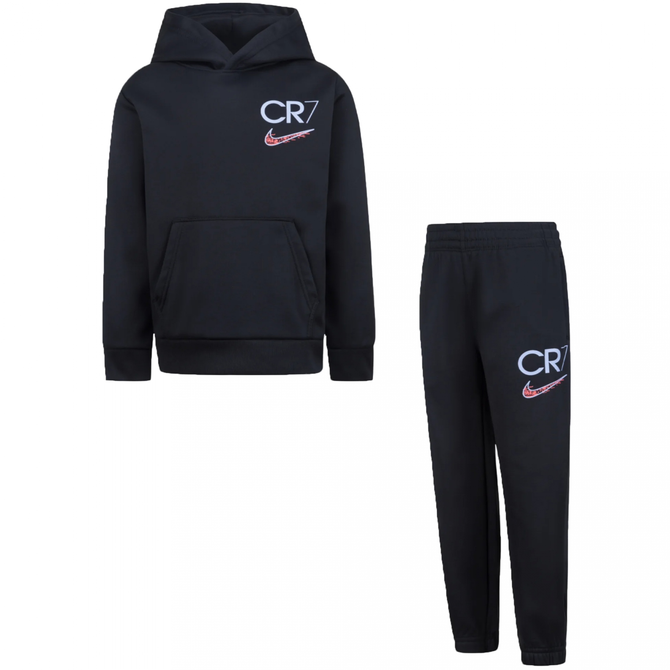 Ensemble 2 pièces Sweat : – Imprimé CR7 sur le côté avec logo Nike – Manches longue – Col capuche Jogging : – Imprimé CR7 sur le côté avec logo Nike – Deux poches latérales – Taille élastique Couleur / Délavage: Noir Nom: 2 pièces Manches: Longues Col: Capuche Composition: Polyester
