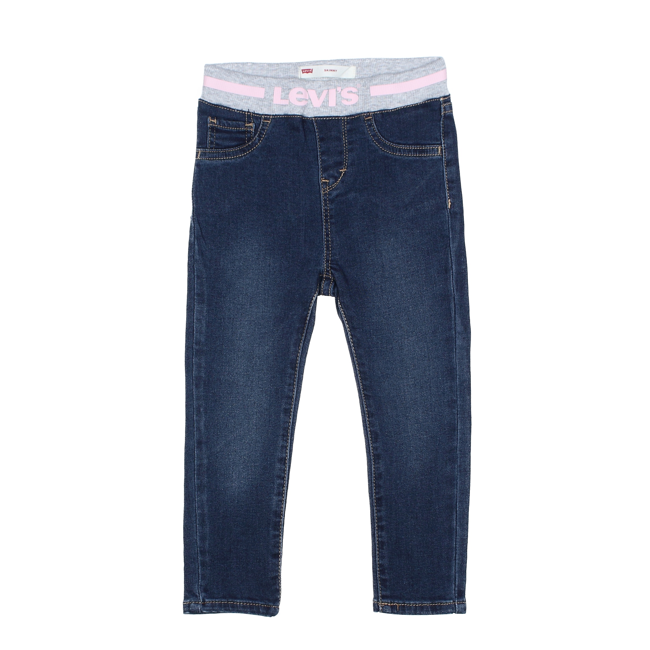 Jeans Levis Kids fille – Tailles Elastique – Imprimé Levi’s sur la taille – Deux fausses poches à l’avant – Deux vraies poches à l’arrière – A enfiler Couleur / Délavage: Bleu Composition: Coton Nom: logotypé Taille jean: Taille normale Coupe jean: Ajustée Finition jean: Délavé