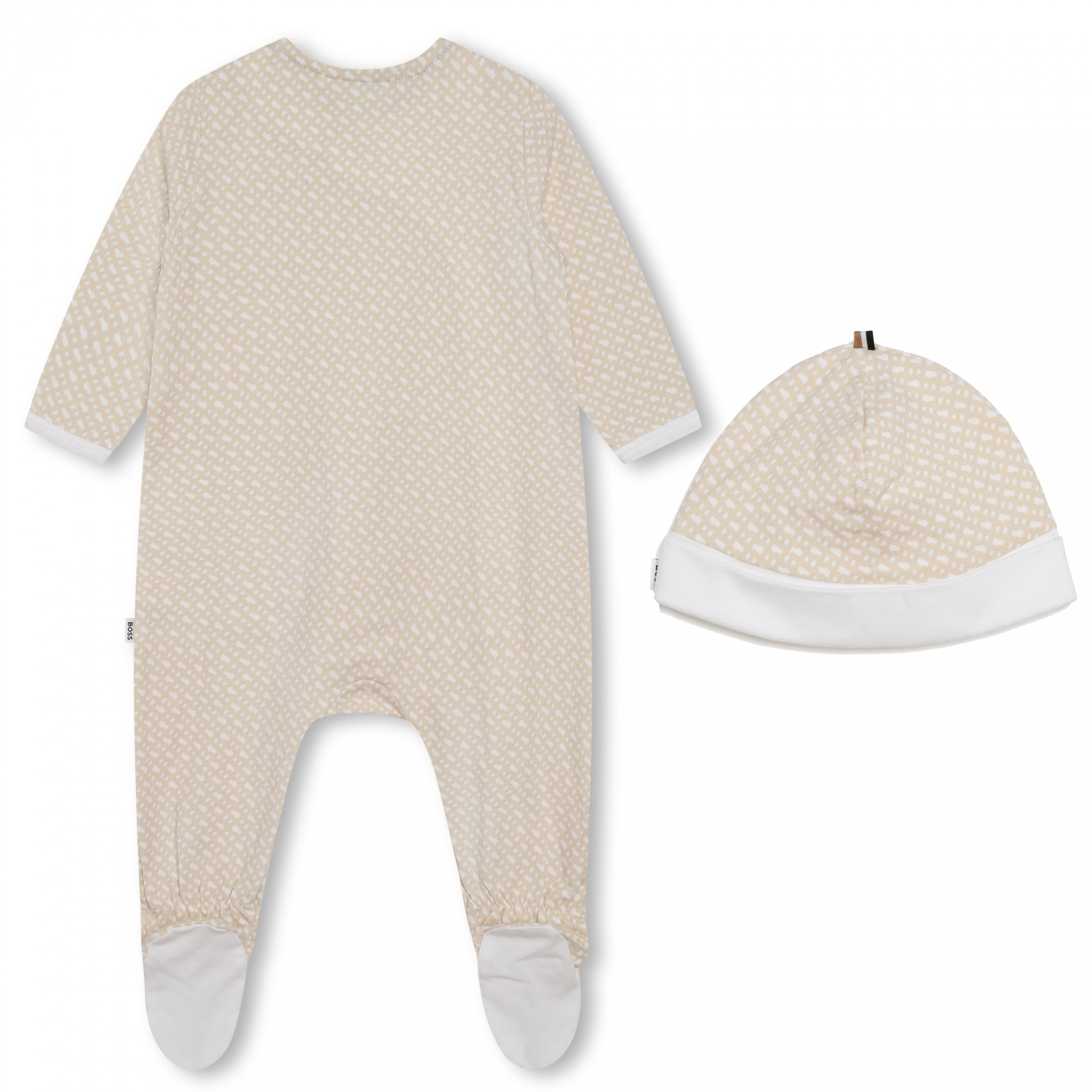 Pyjama deux pièces – Combinaison : B de Boss logotypés sur l’ensemble – Manches longues – Col rond – Fermeture à boutons pressionnés – Bonnet inclus – En coffret Couleur / Délavage: Beige Nom: 2 pièces Manches: Longues Col: Rond Composition: Coton Composition 2: élasthanne