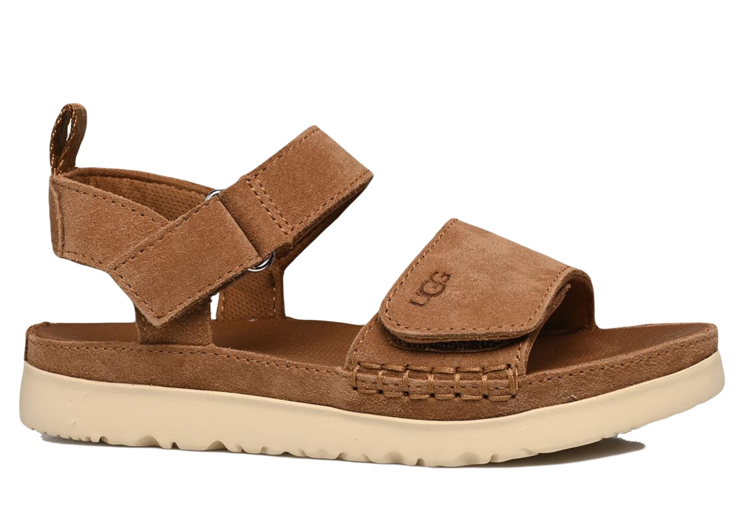 Sandale à scratch – UGG imprimé sur l’avant du scratch – UGG imprimé à l’arrière – Sangle ajustable à scratch – Bout rond ouvert Couleur / Délavage: Marron Nom: à scratchs Style: Basses Talon: Plat Fermeture: A bride/boucle Bout: Ouvert Composition: Polyester