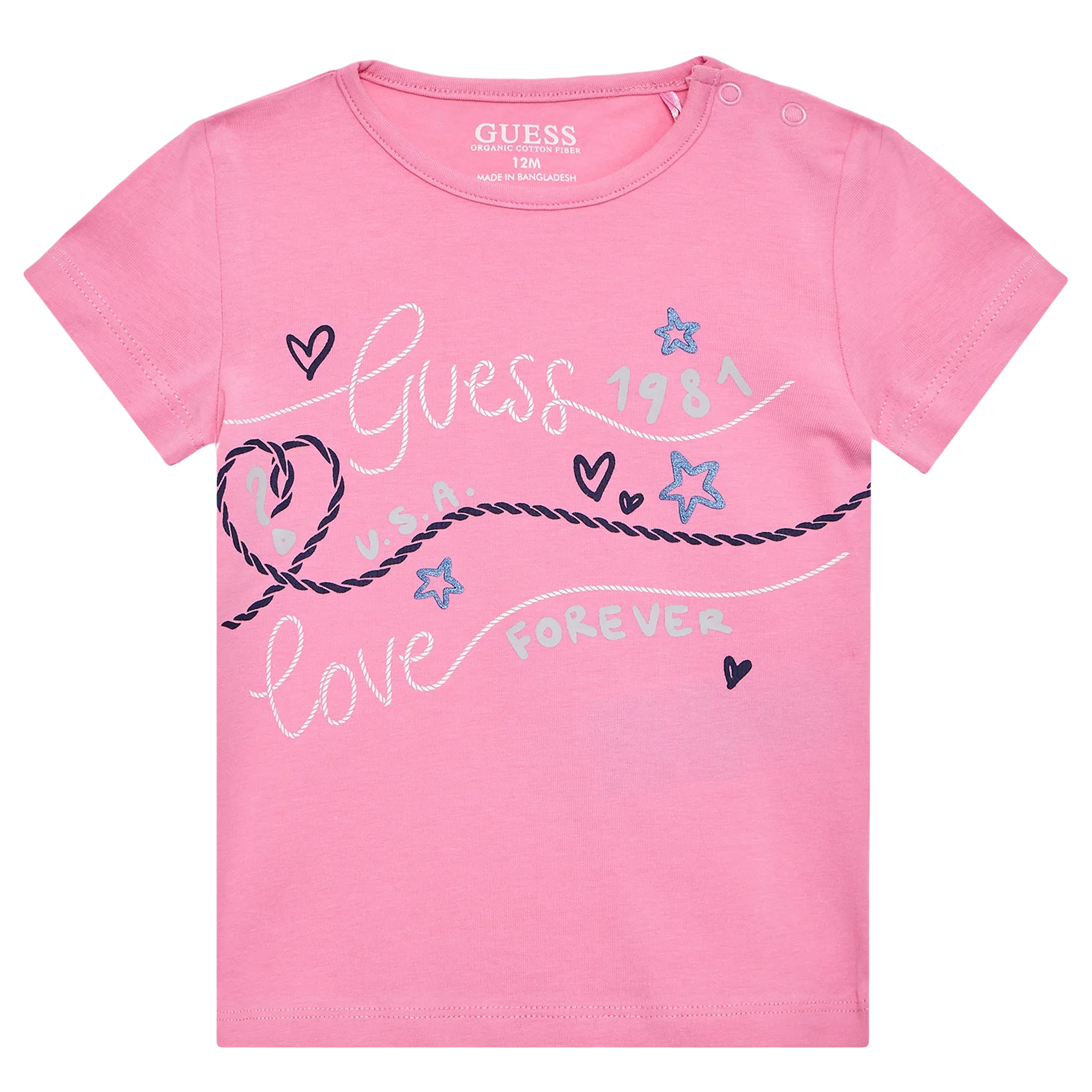 T-shirt à col rond – Imprimé Guess à l’avant – Boutons pressionnés sur l’épaule – Manches courtes – Col rond Couleur / Délavage: Rose Nom: col rond Manches: Courtes Col: Rond Composition: Coton Composition 2: élasthanne