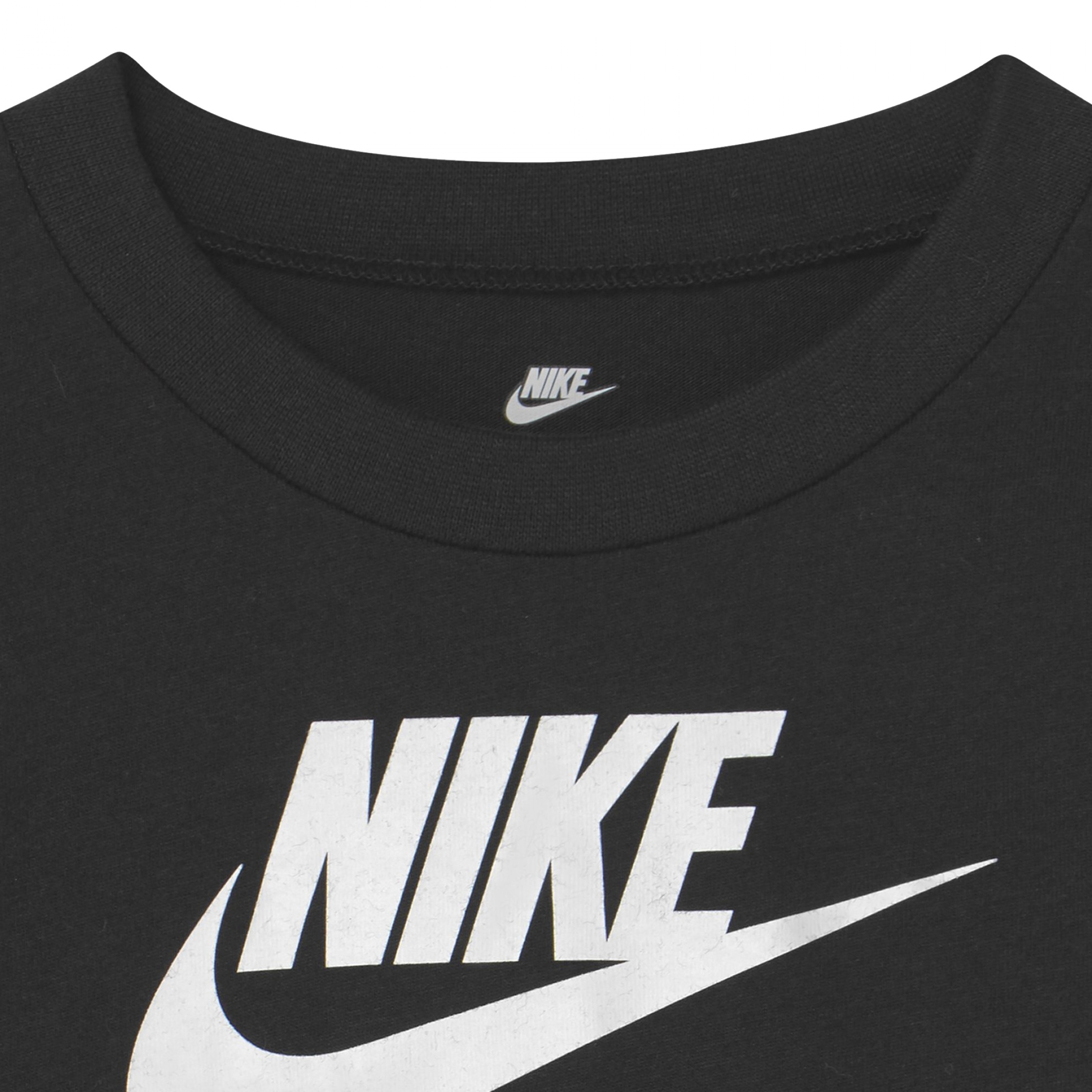 T-shirt Nike – Inscription NIKE sur le devant – Col rond – Manches courtes Couleur / Délavage: Noir Composition: Coton Nom: col rond Manches: Courtes Col: Rond