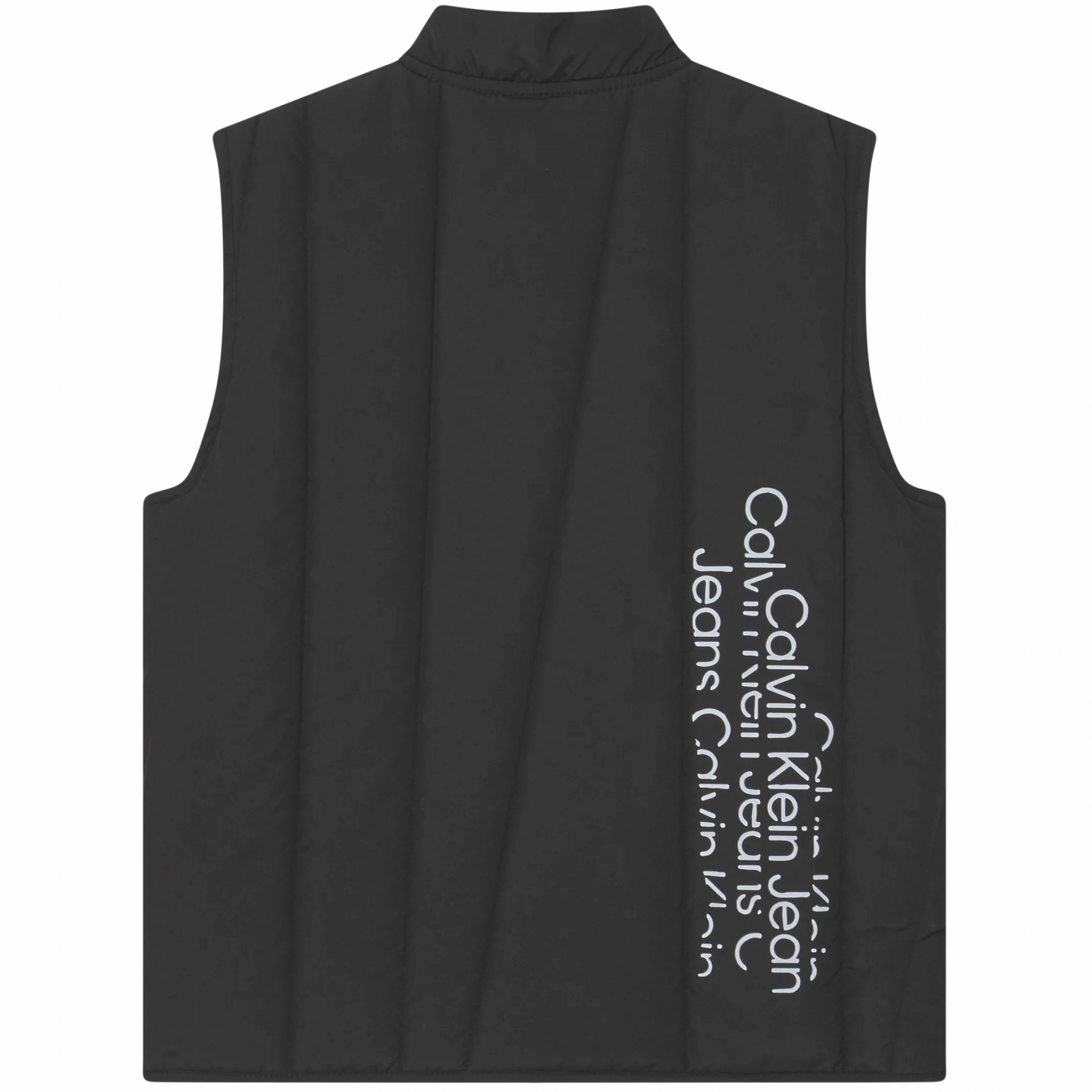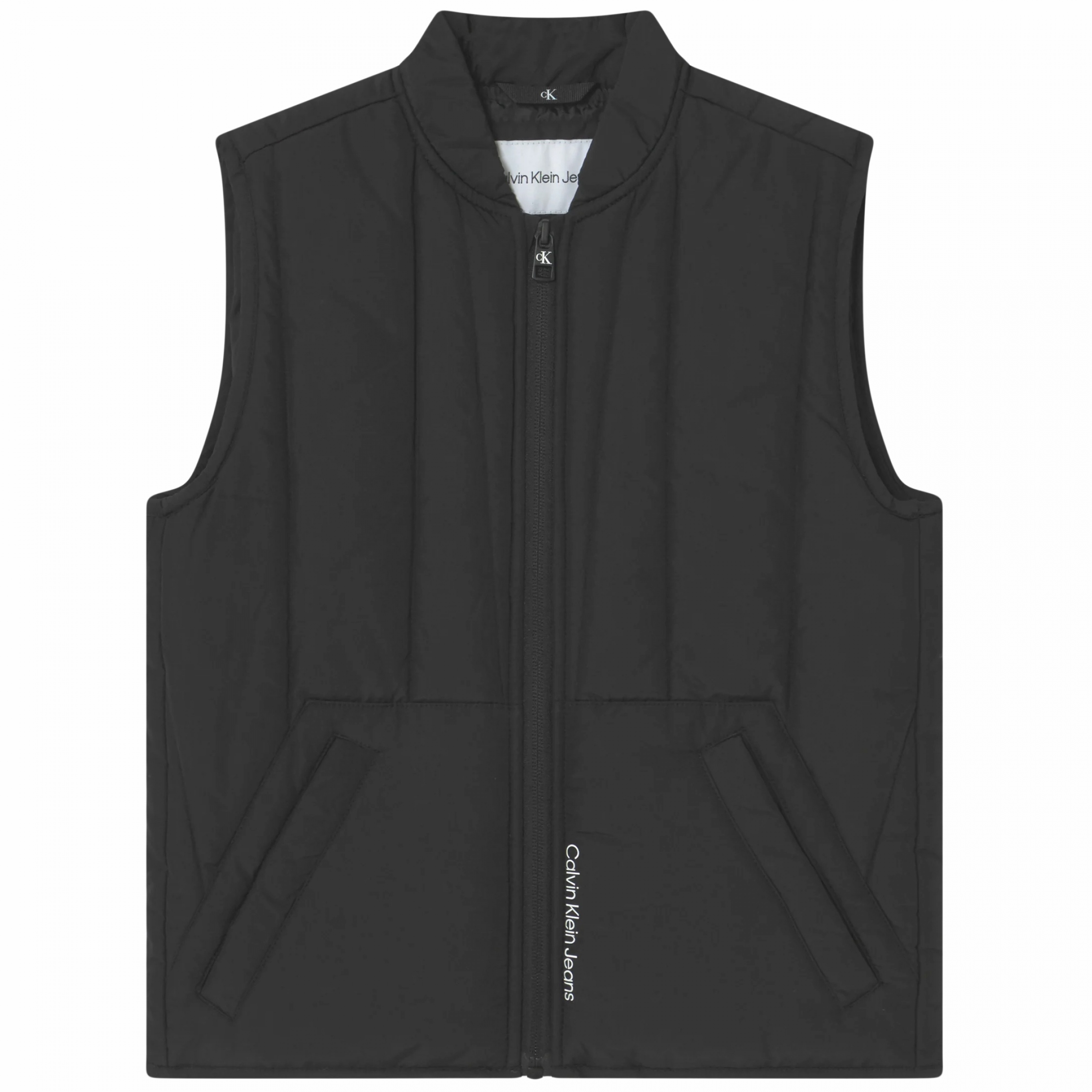 Veste sans manches – Imprimé Calvin Klein sur le bas avant – Imprimé Calvin Klein sur le dos – Deux poches latérales – Col montant – Fermeture à zip – Sans manches Couleur / Délavage: Noir Nom: sans manches Manches: Sans Col: Montant Fermeture: A zip Composition: Polyester Coupe: cintrée